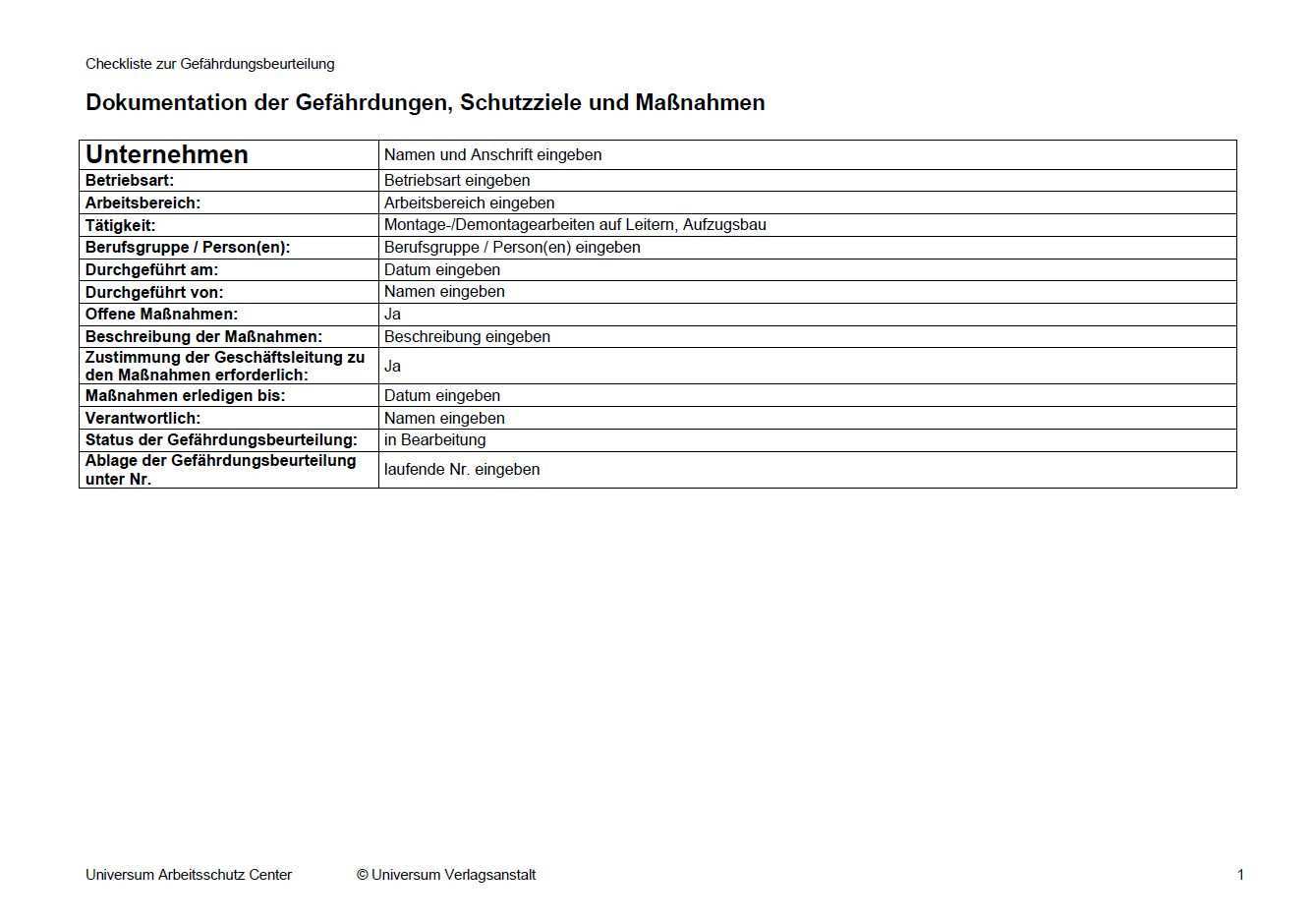 Gefaehrdungsbeurteilung leitern muster. Gefährdungsbeurteilung leitern und tritte. Arbeiten in beförderungsmitteln oder als stewardess fahrerin kontrollorgan pilotin. Das ergebnis einer gefährdungsbeurteilung darstellt benutzt werden. Diese vorlagen unterstützen bei der korrekten erarbeitung erstellung einer gefährdungsbeurteilung.