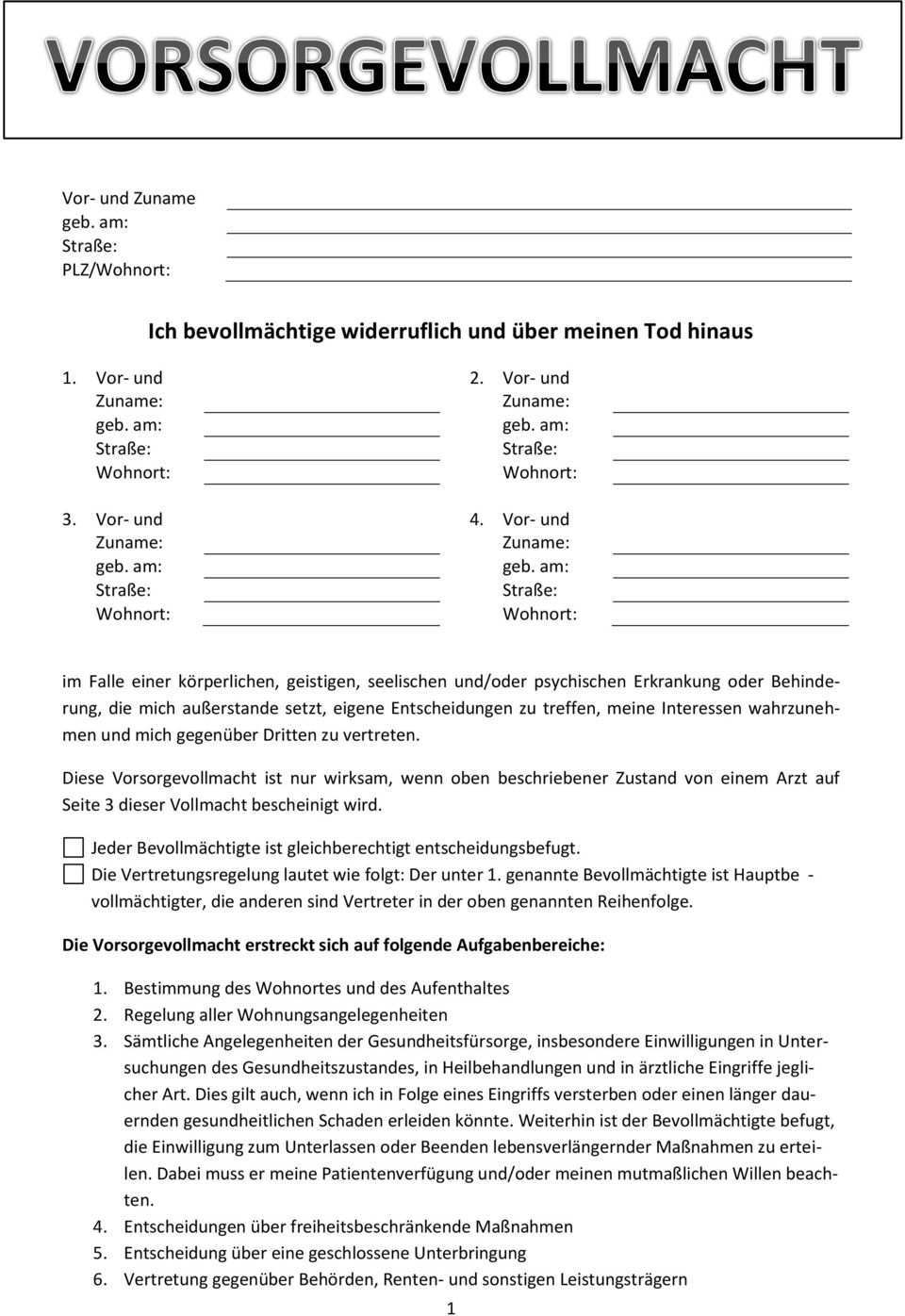 Die vorsorgevollmacht ist somit eine transmortale vollmacht die bereits zu lebzeiten des vollmachtgebers gilt und über den tod hinaus bestehen bleibt. Damit wird dem bevollmächtigten ermöglicht beim todesfall sofort zu handeln und das dringend notwendige vorzukehren. Ort datum ort datum. Geltung über den tod hinaus die vollmacht gilt über den tod hinaus.