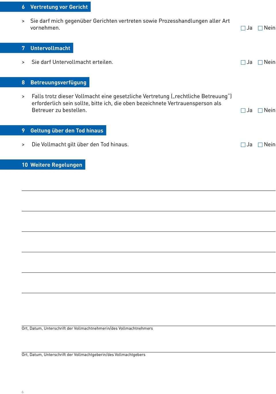 Sie gilt über meinen tod hinaus und verliert erst an gültigkeit wenn sie von mir oder meinen erben widerrufen wird. Abschließend ort und datum eintragen. Weitere regelungen ort datum unterschrift der vollmachtnehmerin des vollmachtnehmers ort datum unterschrift der vollmachtgeberin des vollmachtgebers letzte seite. Schreibe mir unter oemer bekar at vollmacht muster de.