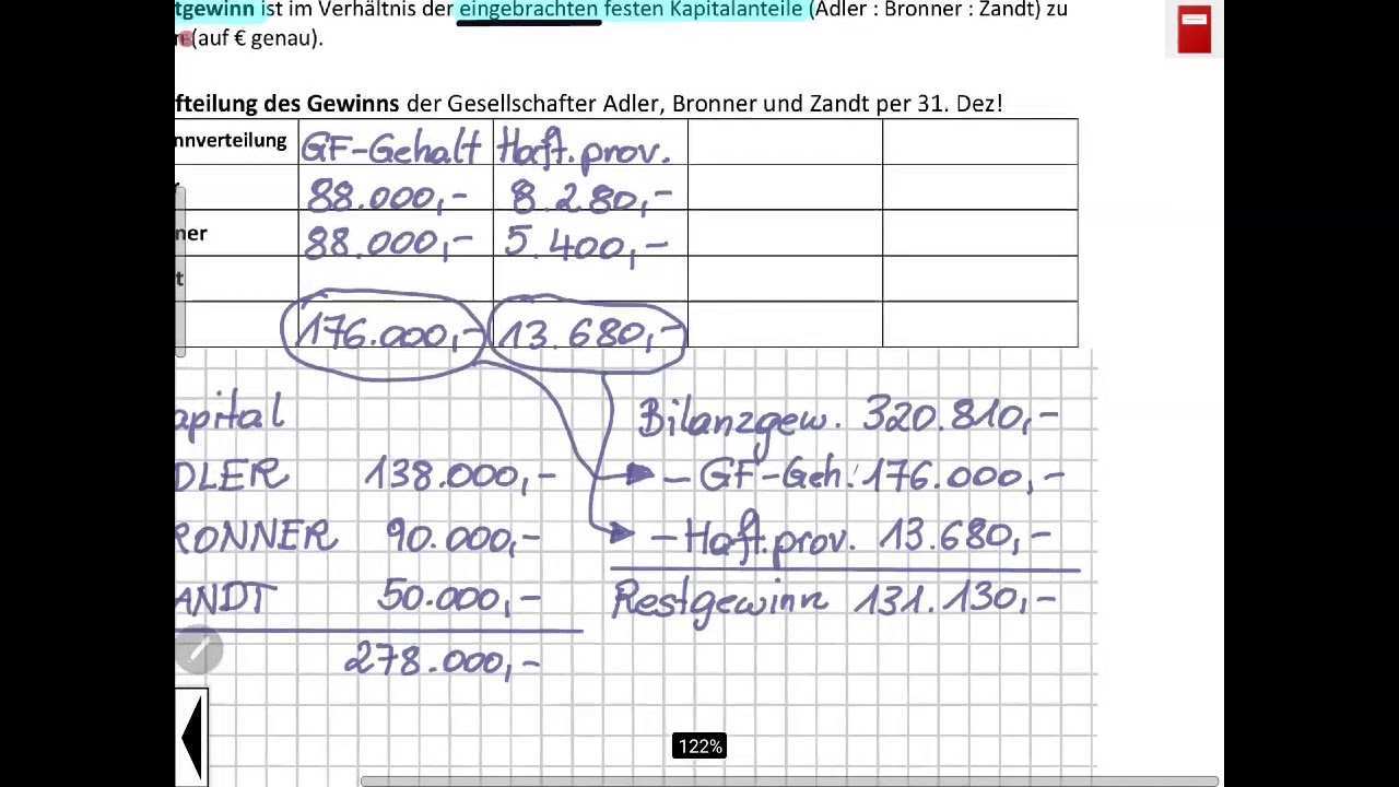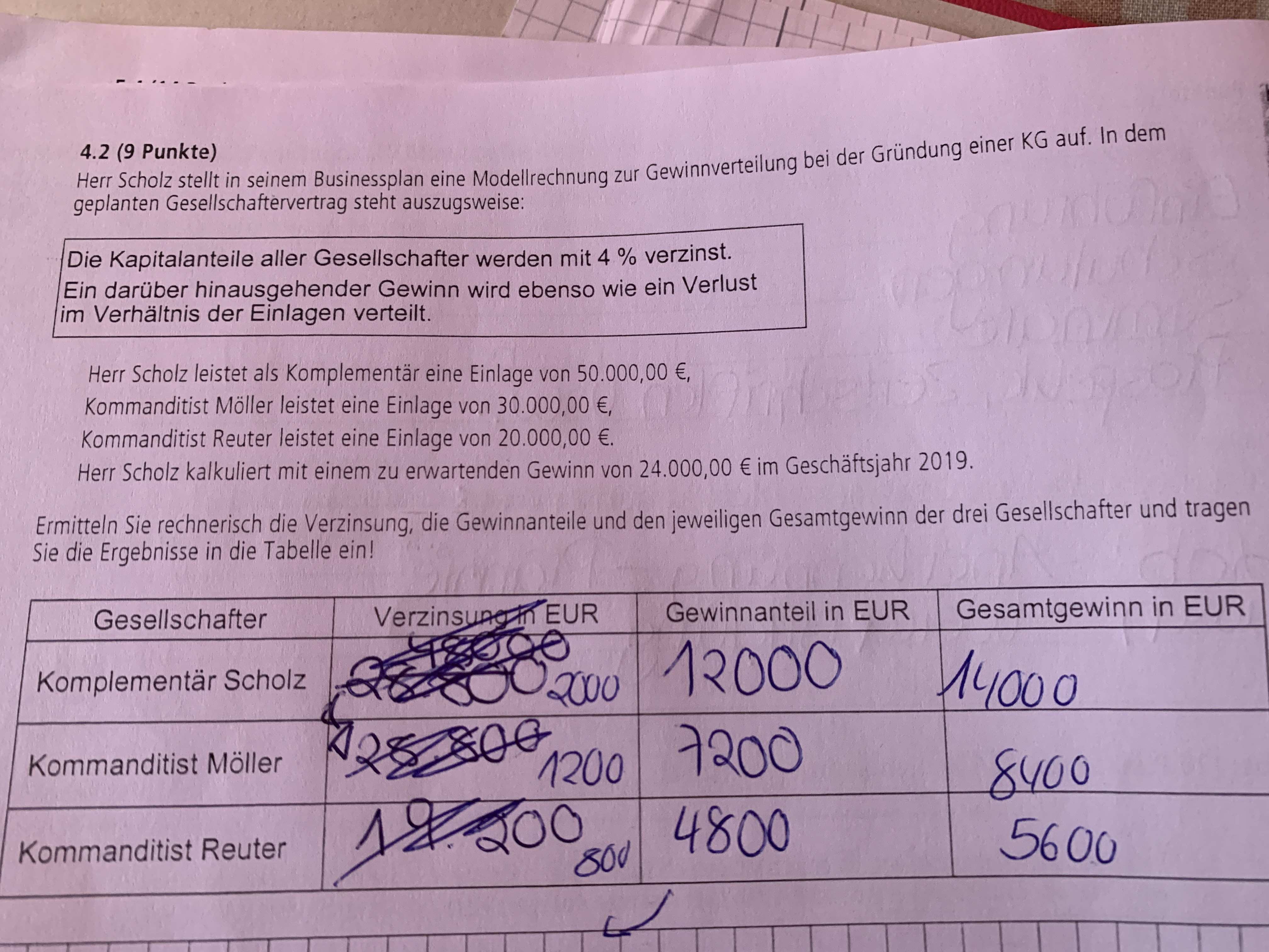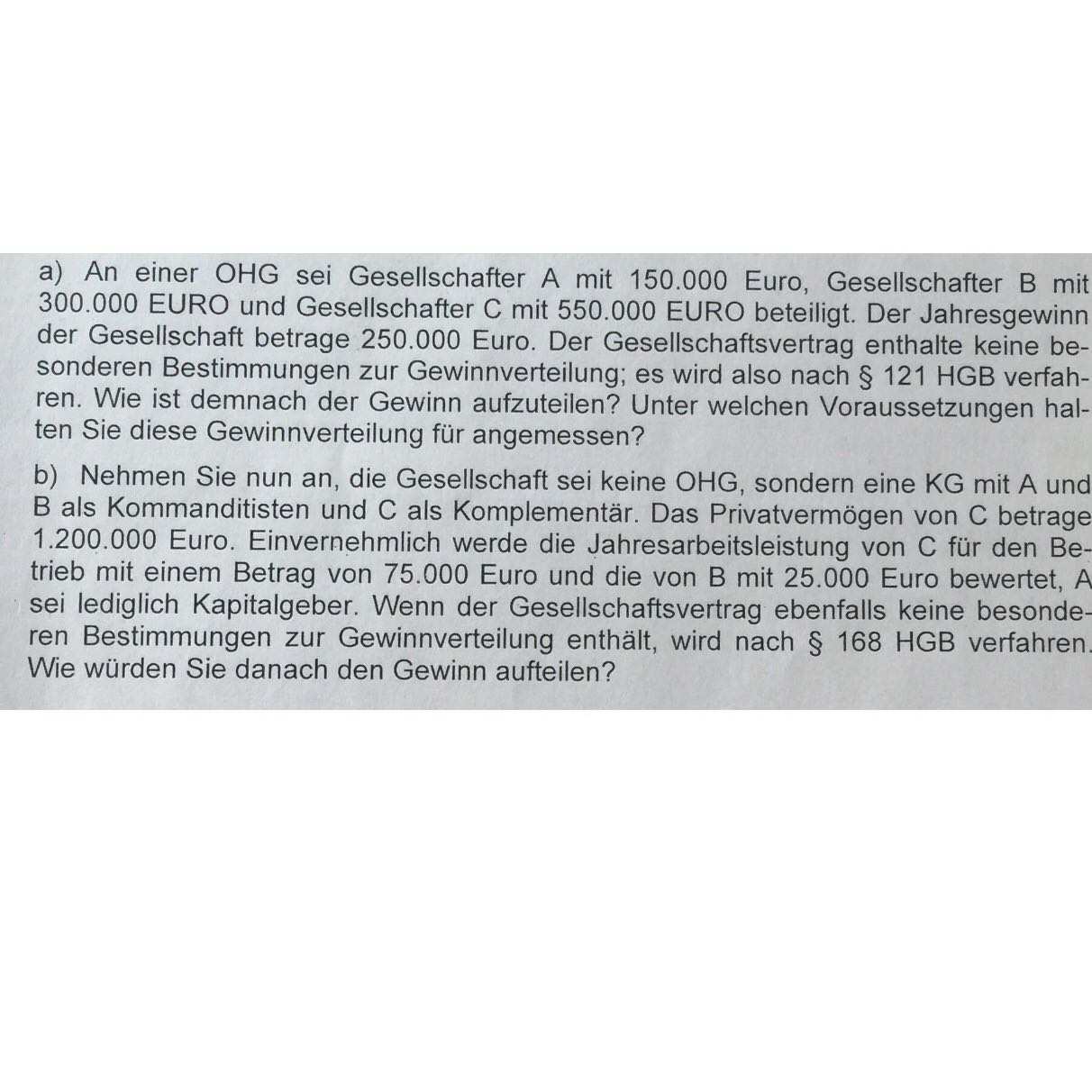 Jahresgewinn 240000 arbeitsleistung von a. Die kg hat einen gewinn von 120 000 erwirtschaften können. Aufgabe wie würde sich die gewinnverteilung ändern wenn das eingezahlte kapital im rahmen der gewinnverteilung nach hgb verzinst würde. Wenn die gewinnverteilung gemäß hgb erfolgt werden die kapitalanteile von allen gesellschaftern mit 4 verzinst 168 abs.
