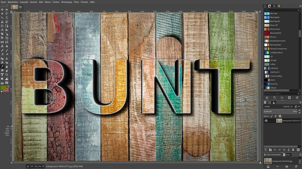 Gimp liefert einige pinselspitzen wie sterne und breite striche mit und ebenso muster zum ausfüllen etwa holzoberflächen. Den herzbrush habe ich von einem anderen youtuber der link dahin folgt gleich. Der dialog wird dazu verwendet muster zu verwalten und auszuwählen.
