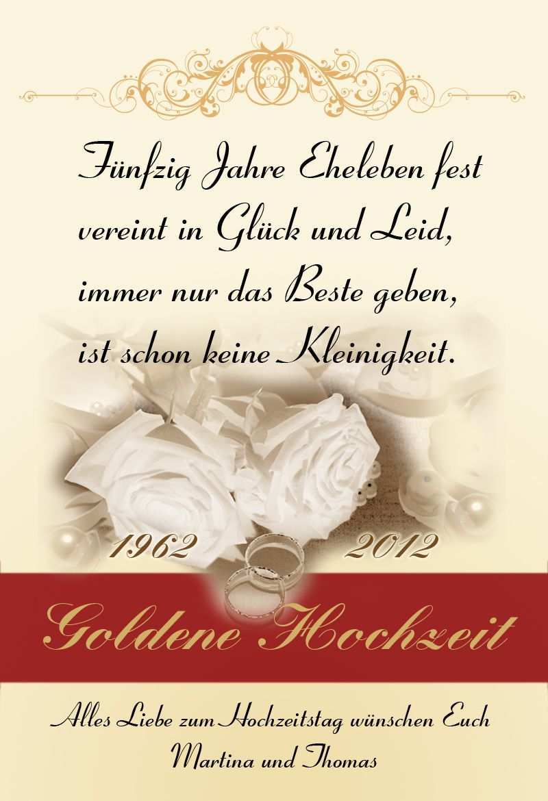 Herzliche gratulation zur goldhochzeit. Verzichten sie daher auf vorgefertigte gratulationskarten aus dem laden sondern setzen sie auf sprueche plus wuensche de denn hier finden sie allerlei wundervolle textvorlagen mit denen sie stilvoll und gelungen zu 50. Ihre gratulation zur goldenen hochzeit sollte etwas ganz besonderes sein und herzen höher schlagen lassen. Um ihren glückwünschen eine individuelle note zu verleihen finden sie eine umfangreiche zitatsammlung diverse tipps und anregungen in dieser vorlage.