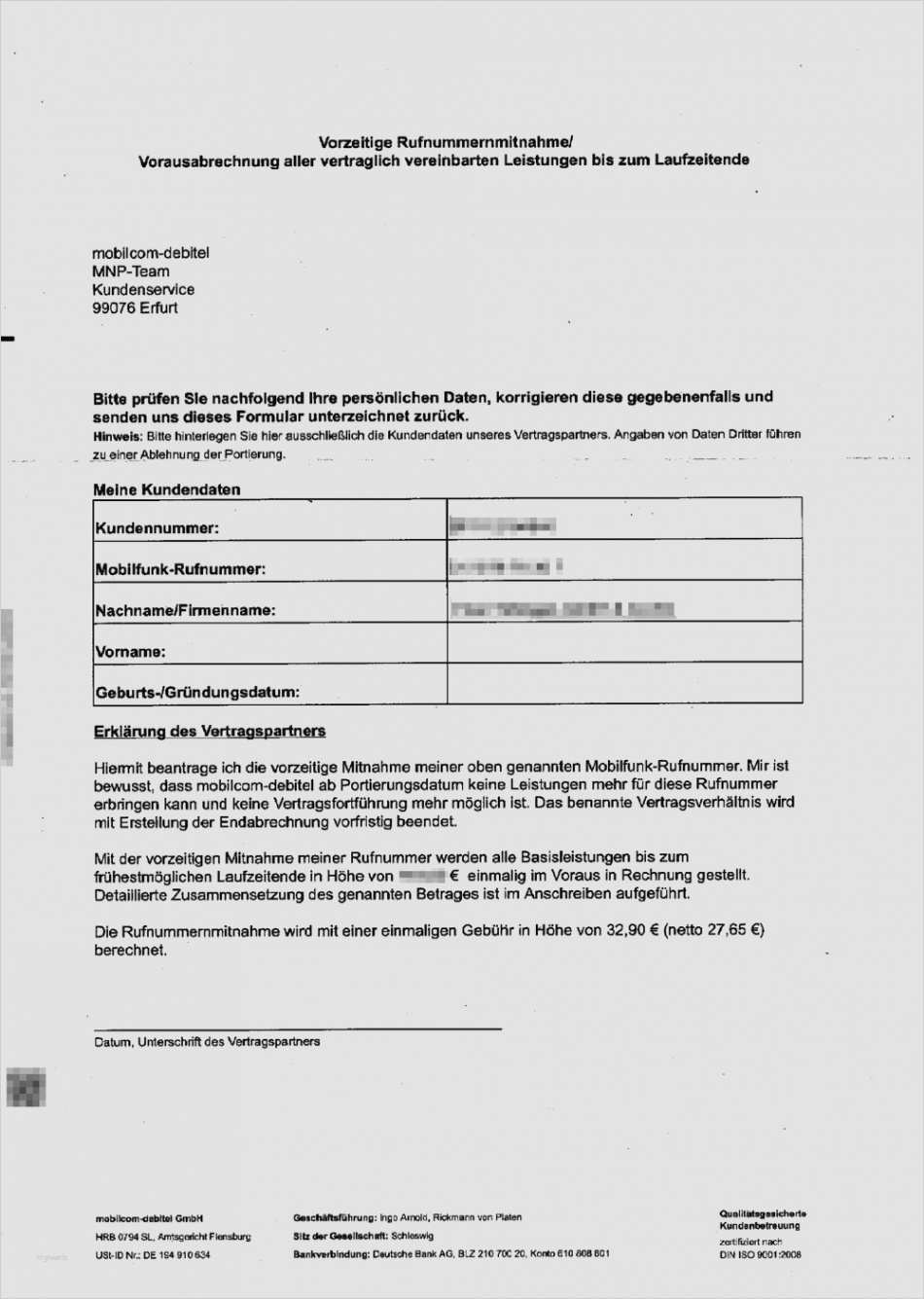 Handyvertrag Kuendigen Mit Rufnummernmitnahme Vorlage Pdf
