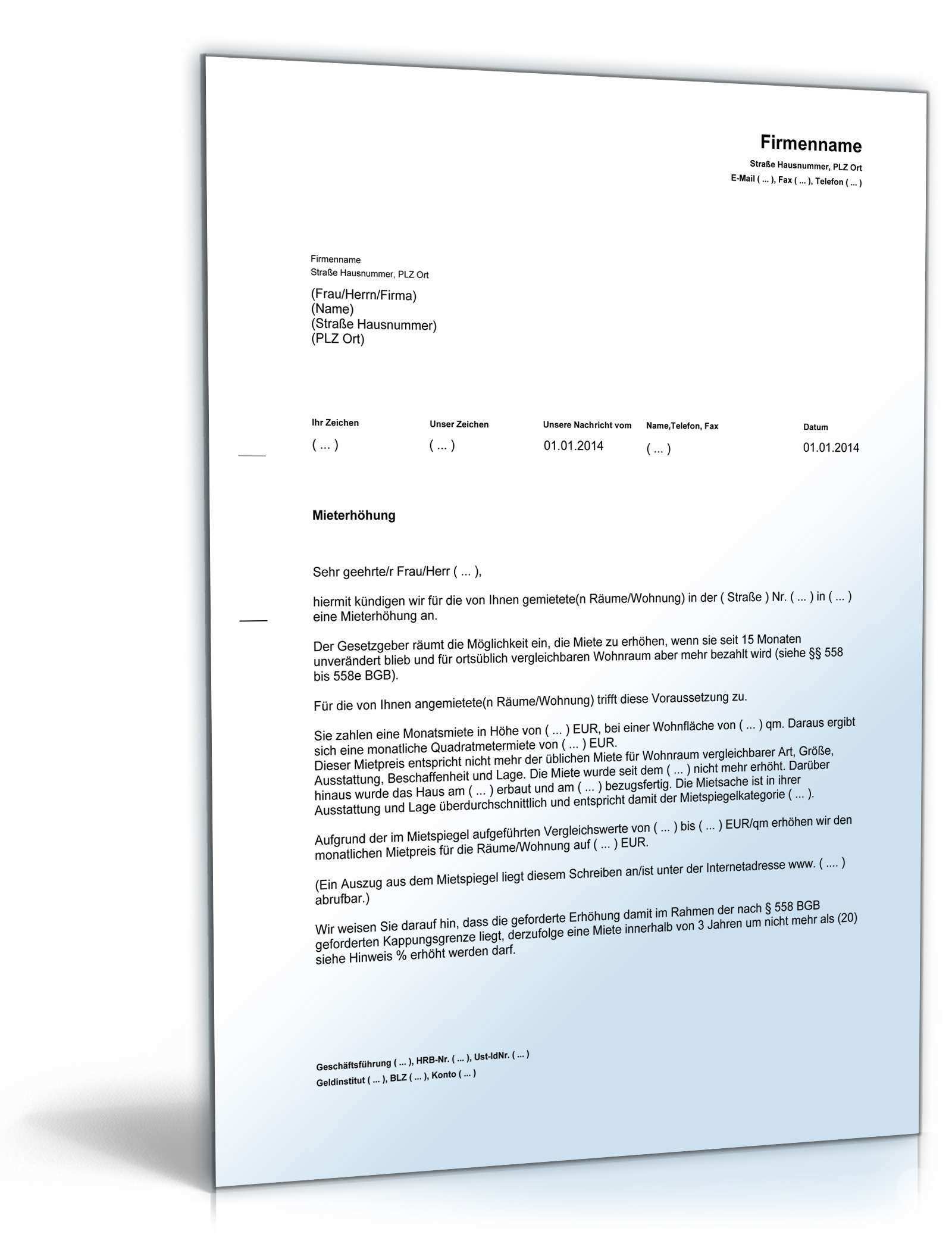 Haftung des herausgebers für sach und vermögensschäden gegenüber verbrauchern nur bei vorsatz und grober fahrlässigkeit. Je nach den gegebenheiten im einzelfall sind die musterschreiben anzupassen und mit konkreten daten zu konkretisieren. Damit sie eine vorstellung davon haben wie ein schreiben aussieht in dem ihnen der vermieter eine mieterhöhung ankündigt haben wir hier ein muster für sie. Muster für mieterhöhung herunterladen.