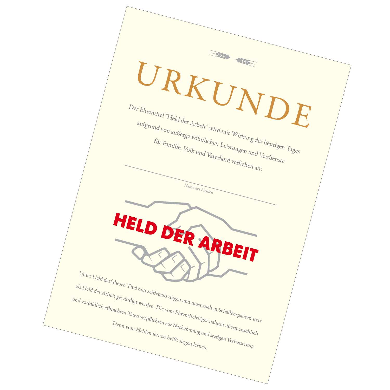 Hier sind einige beispiele für urkunden die mit unserem online urkundengenerator erstellt wurden. Unser held darf diesen titel nun zeitlebens tragen und muss auch in schaffenspausen stets als held der arbeit gewürdigt werden. Max mustermann held der arbeit.