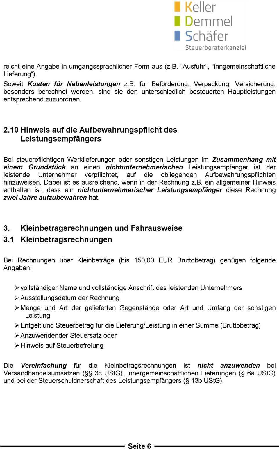 Hinweis Auf Aufbewahrungspflicht Rechnung Muster
