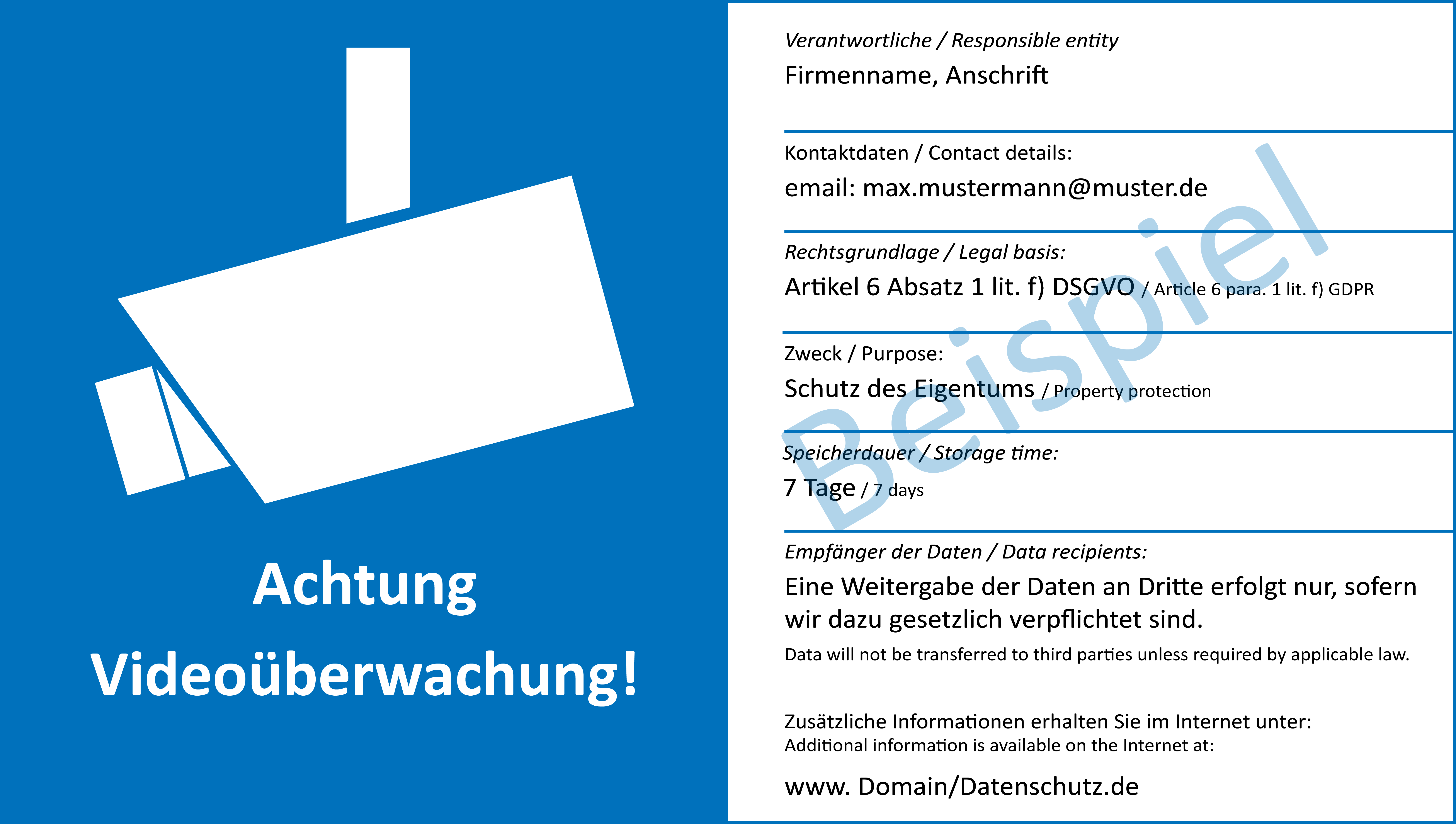 Dsgvo vorlagen hinweisschild videoüberwachung musterdaten.