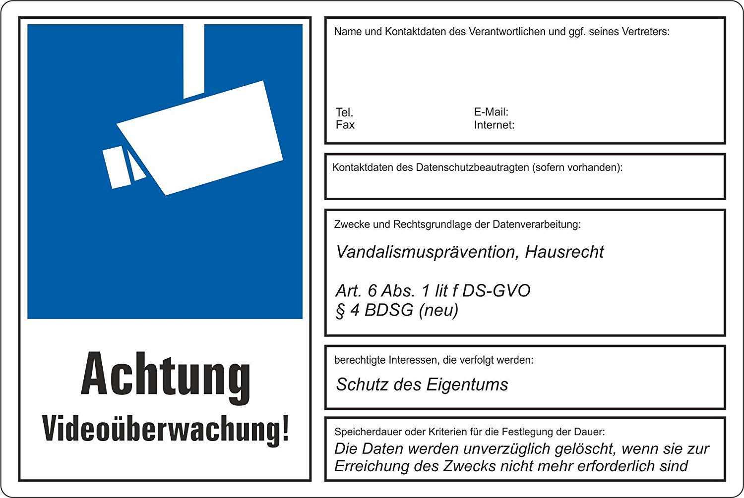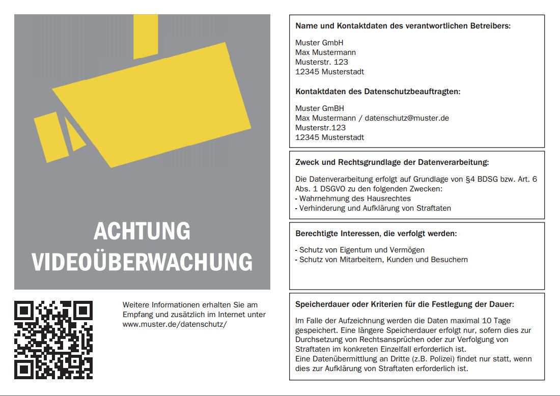 Hinweisschild videoueberwachung dsgvo muster. Wenn ihr das nicht könnt gibt es solche schilder auch zu kaufen siehe link am ende des artikels. Verantwortliche müssen die genannten pflichtinformationen der betroffenen personen auf anfrage mitteilen. Im internet finden sich viele sinnvolle muster zur videoüberwachung. Vorlage für ein datenschutzkonformes hinweisschild zur videoüberwachung.