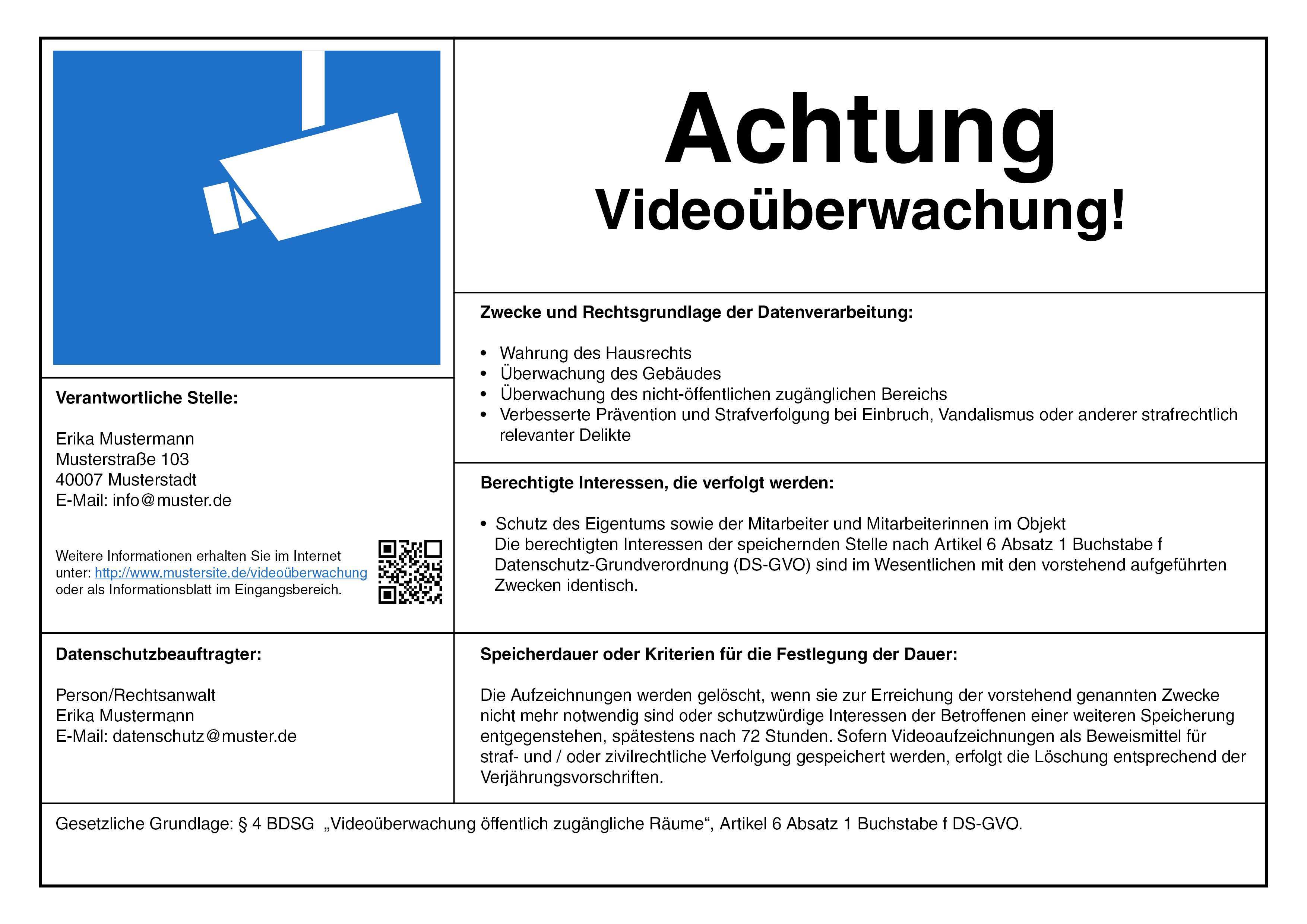 Per aushang wo genau. 13 der datenschutz grundverordnung bei videoüberwachung1 weitere informationen erhalten sie. Auf muster vorlage ch bieten wir kostenlos vier verschiedene hinweisschilder für die videoüberwachung an. Download für ein schild zur videoüberwachung zum ausdrucken.