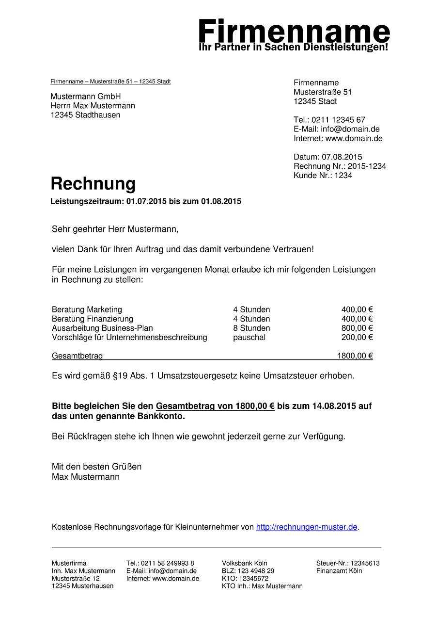 Verwandte beiträge honorarrechnung muster ohne mehrwertsteuer. Eine honorarrechnung muss normalerweise neben dem vollständigen namen von leistungserbringer und empfänger die folgenden angaben enthalten. Dann dürfen sie in ihrer honorarrechnung keine umsatzsteuer mehrwertsteuer ausweisen und müssen die rechnung brutto für netto erstellen. Abgesehen davon hört man mitunter auch geschichten die eher etwas zweifelnd sind doch diese sind eindeutig in der unterzahl.