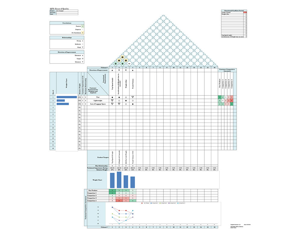 House of quality vorlage. Originating in 1972 at mitsubishi s kobe shipyard site the house of quality has been used successfully by japanese manufacturers of consumer electronics home appliances clothing and for services like swimming schools and retail outlets. Quality function deployment or house of quality is a famous method for transforming these customer demands and expectations into step by step processes for delivering the product or service. The house of quality is a basic design management tool used frequently as part of quality function deployment qfd. Qfd ist die abkürzung von quality function deployment und es ist ein beliebtes werkzeug für die themen qualitätsmanagement sowie produktinnovation und produktentwicklung.