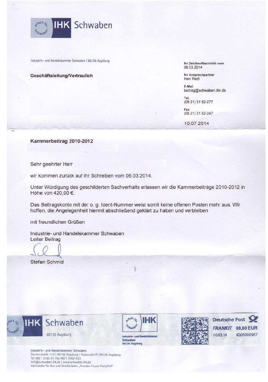 Ihk beitragsbefreiung muster. Sich davon befreien können. Kleingewerbe ohne handelsregistereintragung und einem erwarteten gewinn von nicht mehr als 5200 im jahr können sich vom beitrag befreien lassen. Die mitgliedschaft und damit auch die beitragspflicht enden grundsätzlich ab dem zeitpunkt ab dem das ihk mitglied nicht mehr gewerbesteuerpflichtig ist. Inhalte von externen internetseiten zu denen ein link geschaltet wurde macht sich die ihk nicht zu eigen und kann deshalb für deren inhaltliche korrektheit vollständigkeit und verfügbarkeit ebenfalls keine gewähr übernehmen.