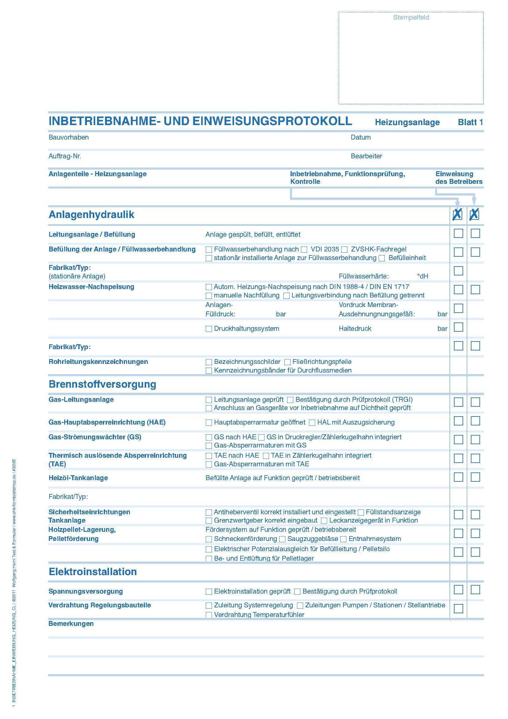 Inbetriebnahmeprotokoll heizung vorlage. Es ist stets sichergestellt dass alle notwendigen arbeiten durchgeführt und protokolliert werden. Druckprüfung einer heizungsanlage. 08751 74 fax 08751 741600 internet.