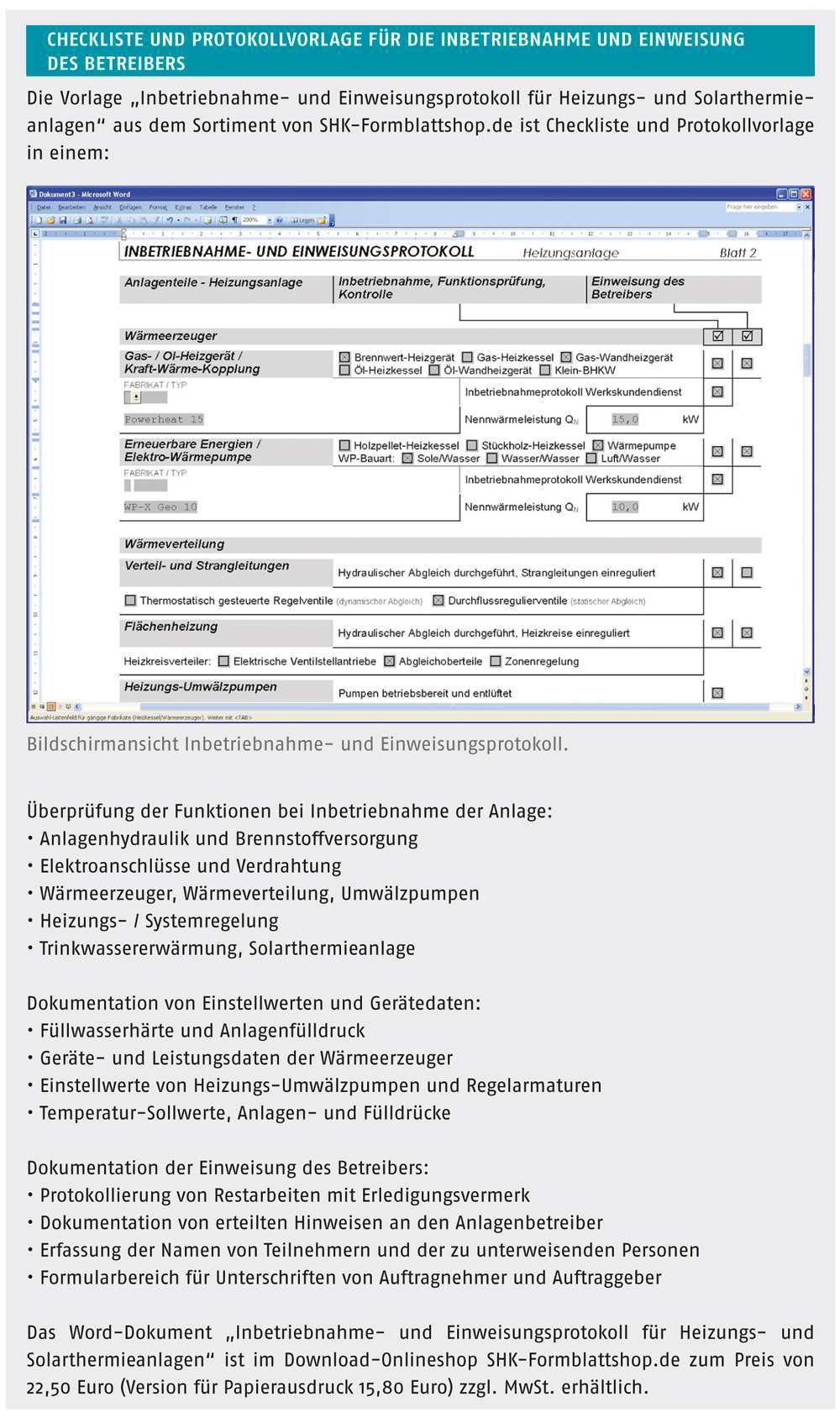 Wenn sie für die anfertigung vom inbetriebnahmeprotokoll muster benötigen werden sie unter anderem bei den formularmustern des zvshk fündig. In der din en 14336 2005 01 wird die. Herzlich willkommen exklusiv für mitglieder der shk organisation bietet die internetplattform zugriff auf über 180 praxisnahe arbeitsvorlagen für das shk handwerk die sich sowohl aus technischen als auch aus kaufmännischen formularen zusammensetzen. Welche maßnahmen werden im inbetriebnahmeprotokoll der heizung dokumentiert.