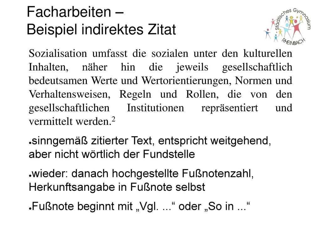 Das folgende beispiel zeigt ein indirektes zitat. Indirektes zitat beispiel bei quellenangaben obgleich es sich um ein direktes oder indirektes zitieren handelt unterscheidet man zwischen zwei varianten. Die angaben können in klammern im text sog. Verwendet ausnahme bei bspw.