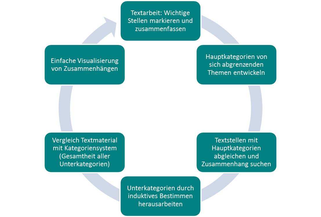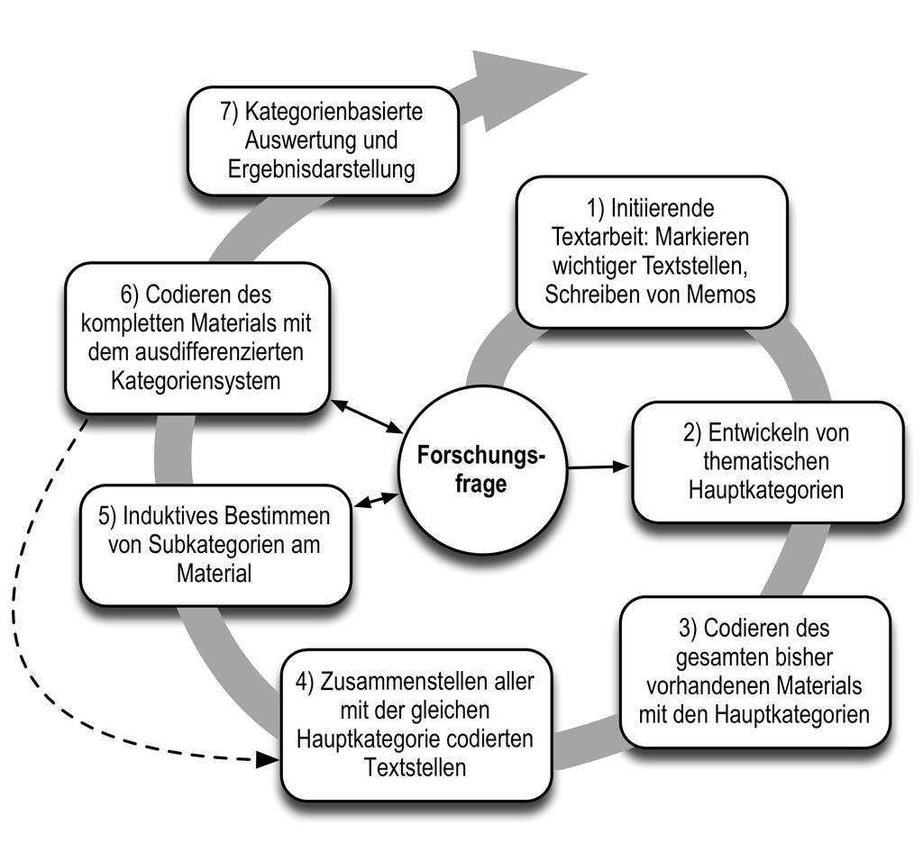 Unter der strukturierenden qualitativen inhaltsanalyse nach kuckartz versteht man die induktiv entwickelte kategorienbildung entlang von texten bis hin zur deduktiven umsetzung von kategorien.