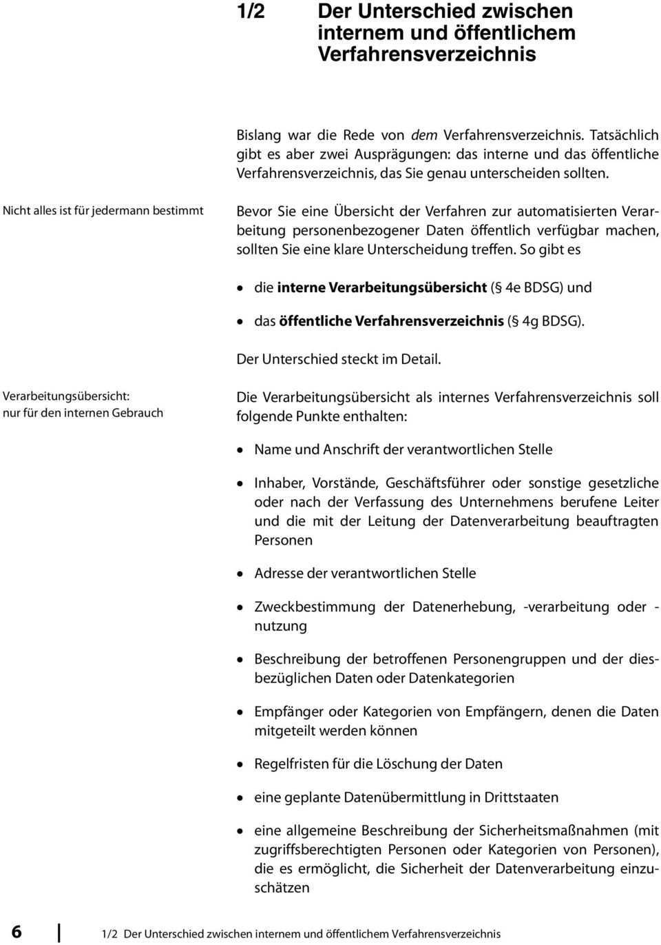 Ein internes verzeichnis von verarbeitungstätigkeiten nach dsgvo müssen sowohl verantwortliche für den datenschutz als auch auftragsverarbeiter führen. Es dient dazu eine betriebsinterne selbstkontrolle zu ermöglichen. Internes verfahrensverzeichnis öffentliches verfahrensverzeichnis verfahrensverzeichnis. Das öffentliche verfahrensverzeichnis hingegen soll nach außen hin transparenz über die datenverarbeitungsvorgänge schaffen.