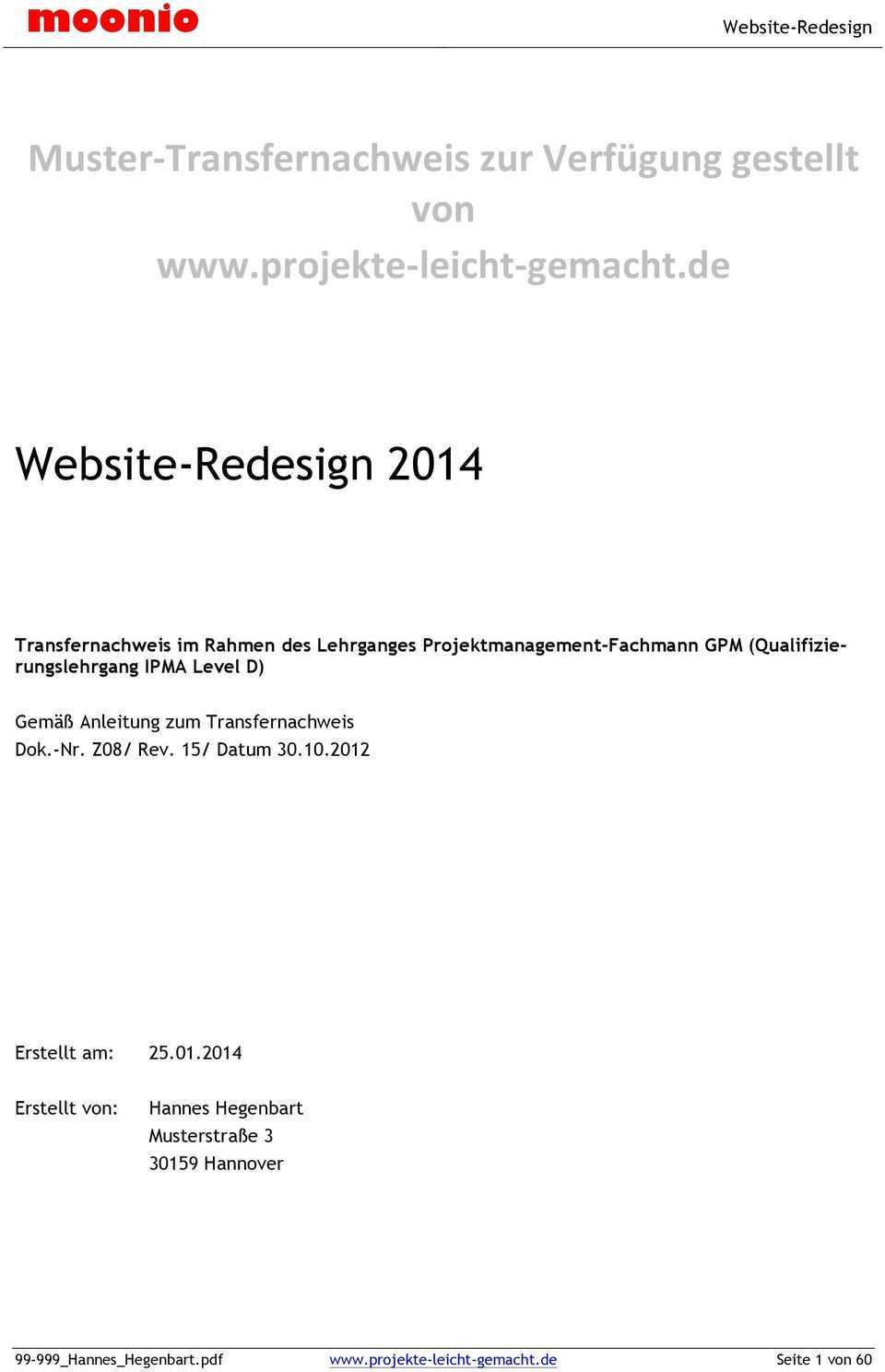 Datum z08 20 5 1 2015 anleitung zum transfernachweis seite 1 von 12 z08 ncb3 v20 doc pm zert zertifizierungsstelle der gpm anleitung zum transfernachweis ipma level d.