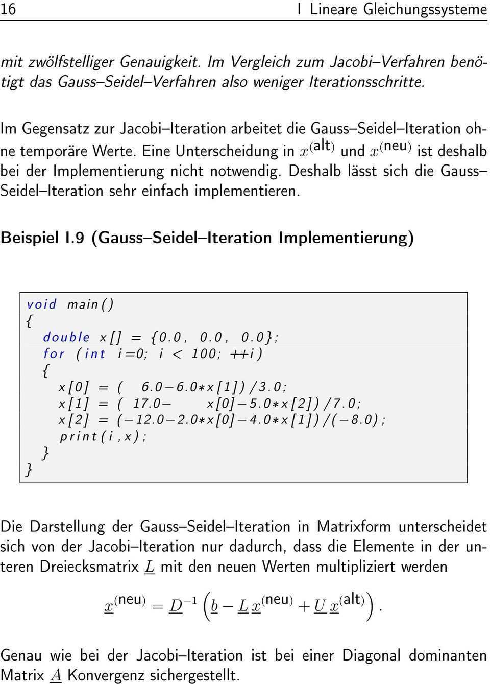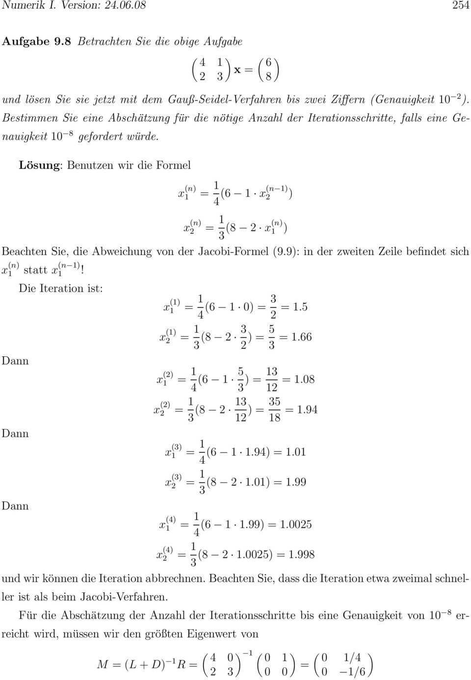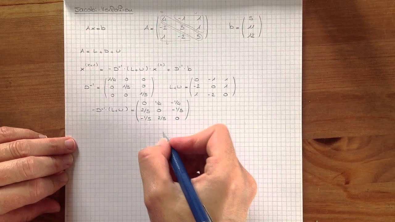 1 10z y 1 8. Insgesamt haben wir f ur die iterierten xm folgende komponentenschreibweise. In der numerischen mathematik ist das jacobi verfahren auch gesamtschrittverfahren genannt benannt nach carl gustav jakob jacobi ein algorithmus zur näherungsweisen lösung von linearen gleichungssystemen a x b ax b a x b. Es ist wie das gauß seidel verfahren und das sor verfahren ein spezielles splitting verfahren.