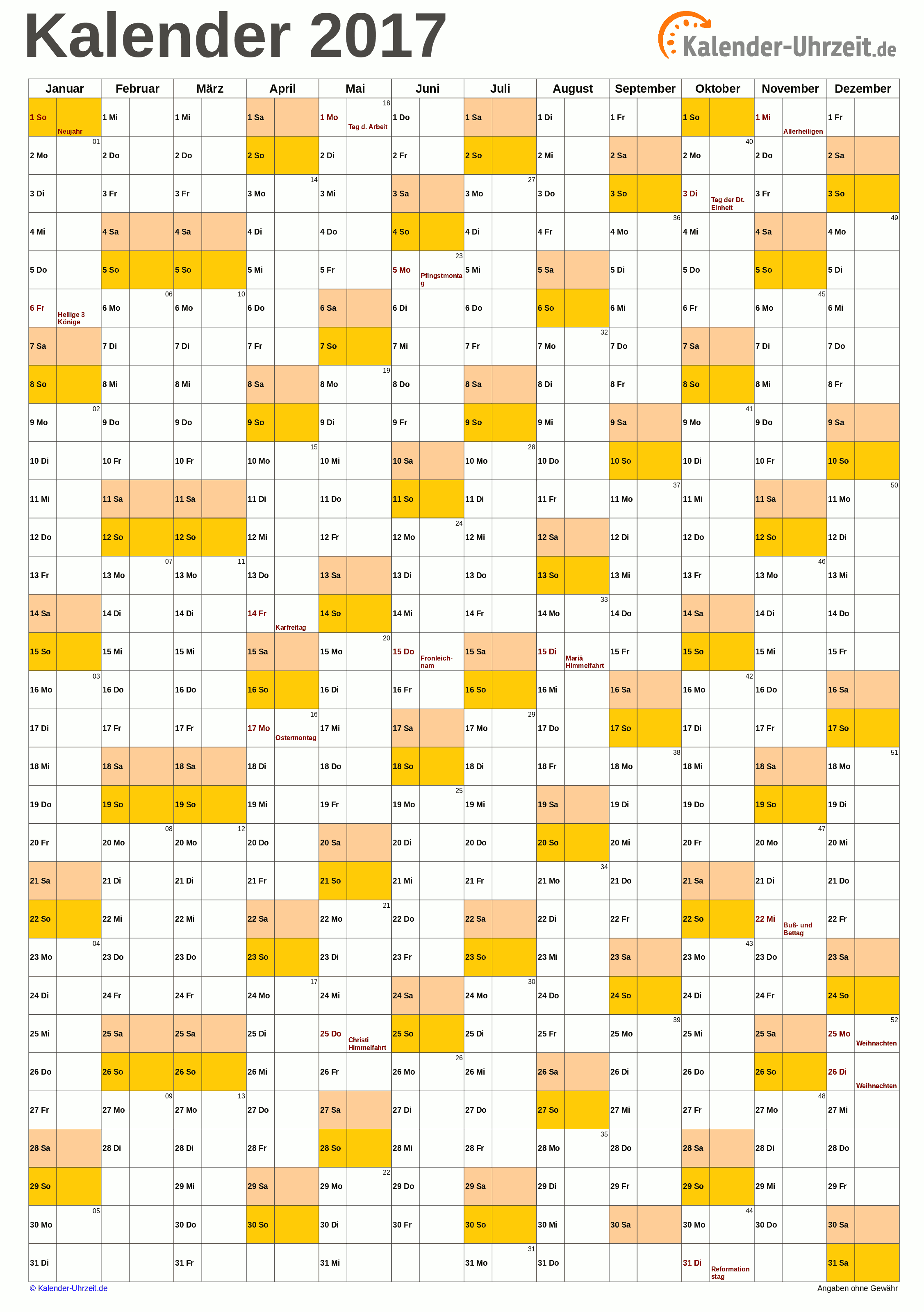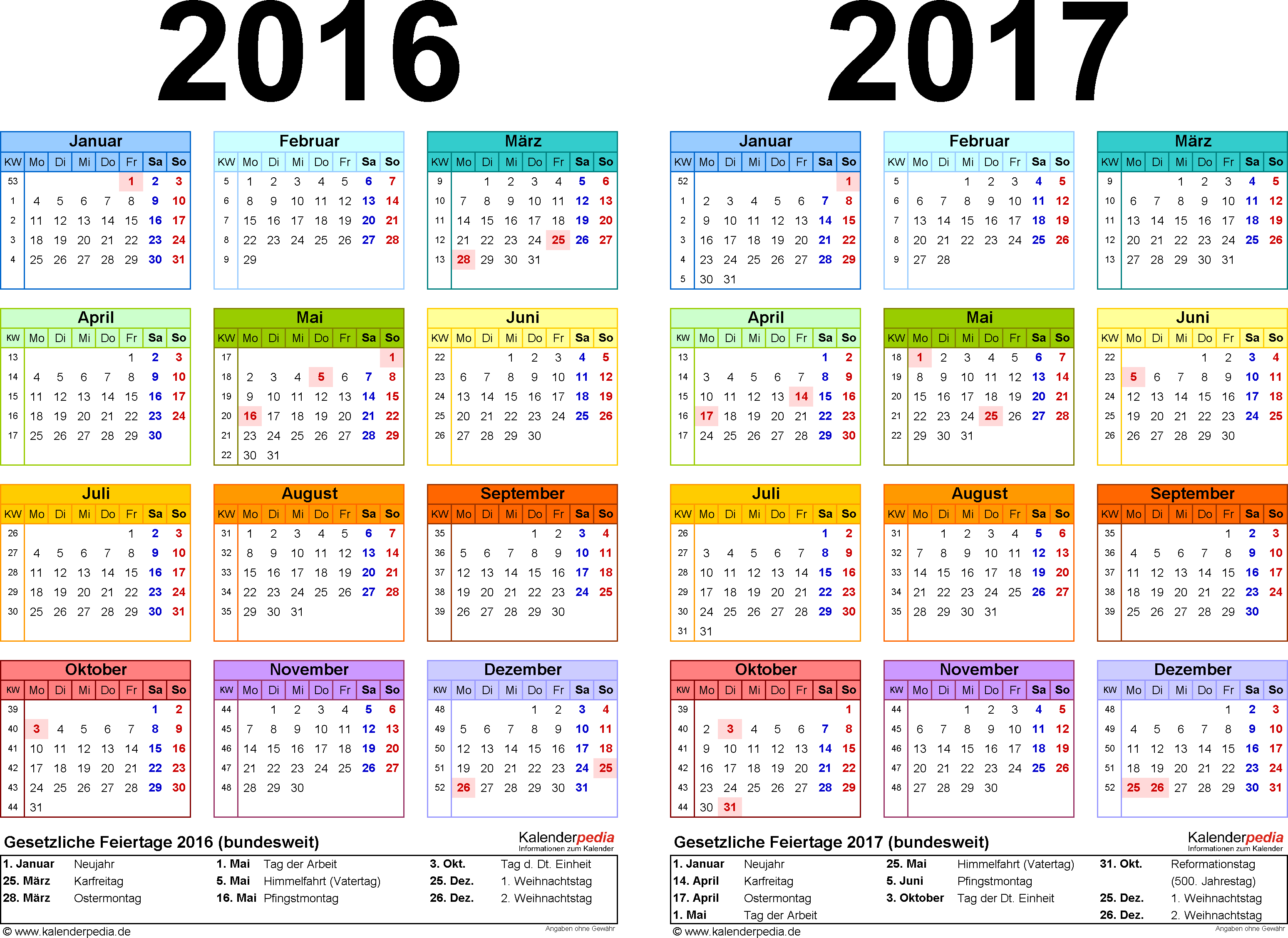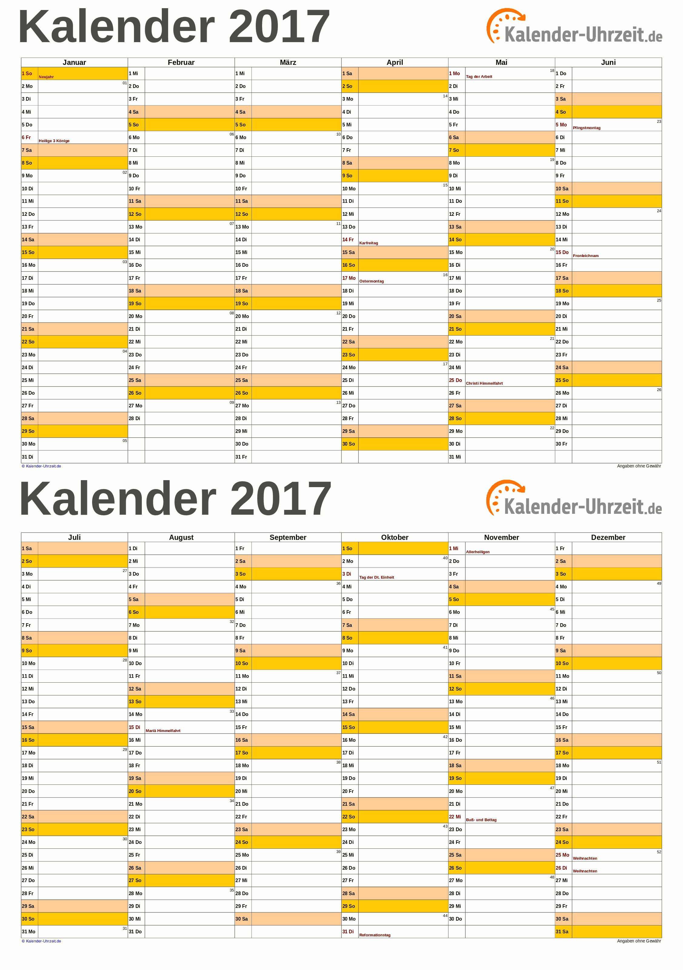 Jahreskalender monatskalender jahresüberblick oder wochenkalender 2017 in verschiedenen designs und layouts mit kalenderwochen und bundesweiten feiertagen. Alle kalendervorlagen sind frei leer bedruckbar und voll editierbar. Jahrestags der reformation wird nur 2017 der reformationstag bundesweit gefeiert bisher nur in 5 bundesländern. Auch dieses jahr gibt es ihn wieder.