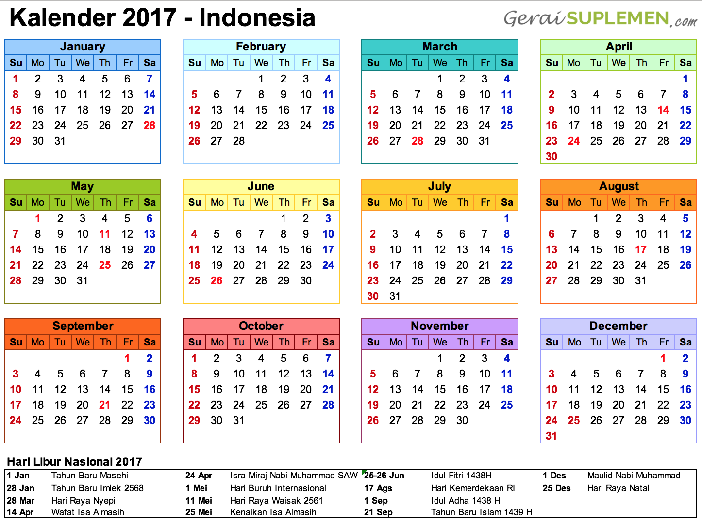Kalender Vorlage 2017