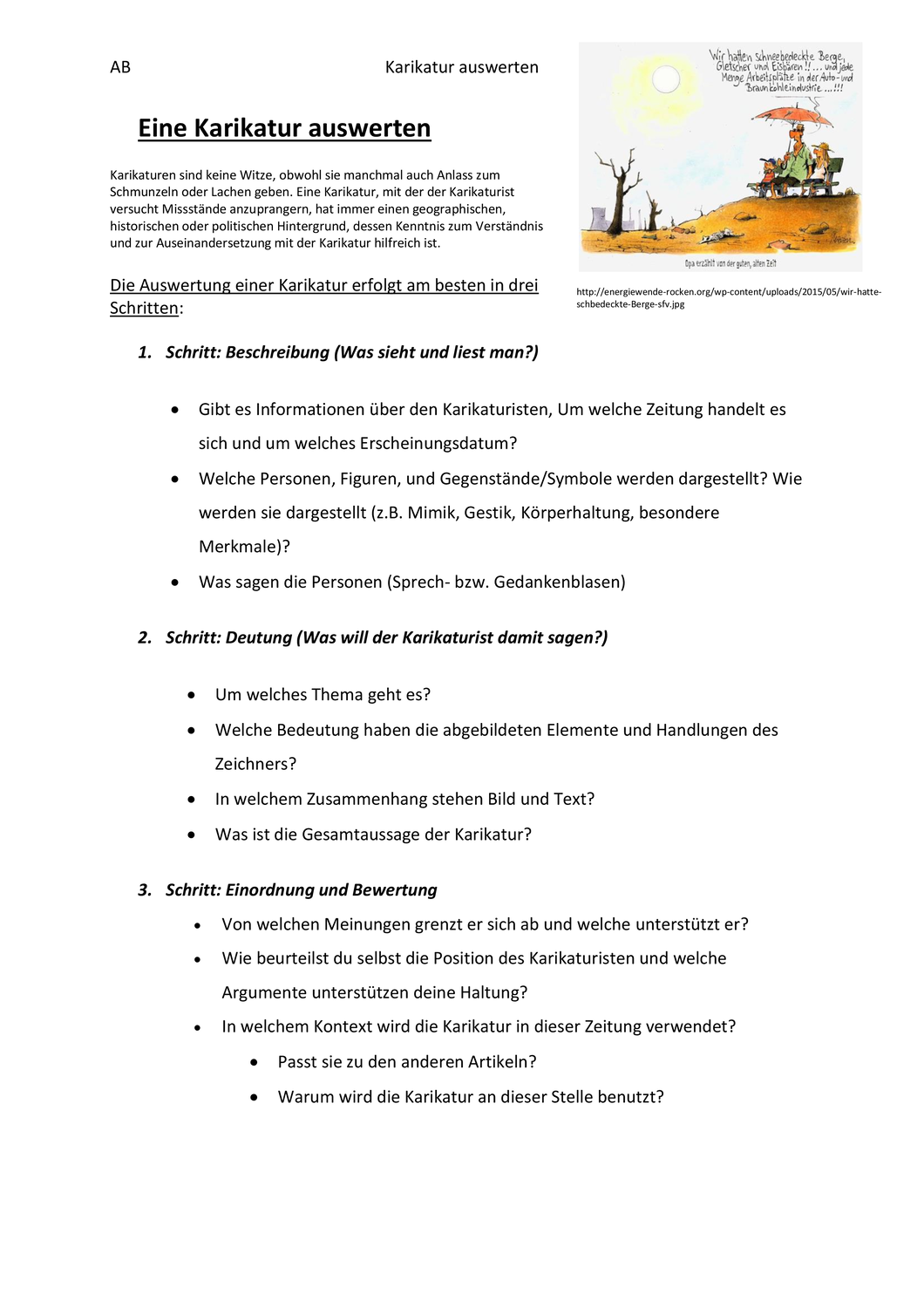 Rechts steht ein mann der eine schürze trägt auf dem lehrer steht. Stunde einleitung hauptteil schluss eine karikatur interpretieren m 4 ab eine karikatur interpretieren die einleitung m 5 ab eine karikatur genau betrachten die beschreibung m 6 ab sachlich und genau so interpretiert man eine karikatur m 7 ab stimmen sie dem zeichner zu. Auswertung karikatur der republik 21 03 2010 beispiel geschichtsklausur französische revolution 09 03 2010 beispiel quelleninterpretation 12 01 2010 beschreibung einer charikatur 22 03 2010 beschreibung karikatur zur entnazifizierung 12 03 2010. Sie schwitzt und bleibt auf der stelle stehen.
