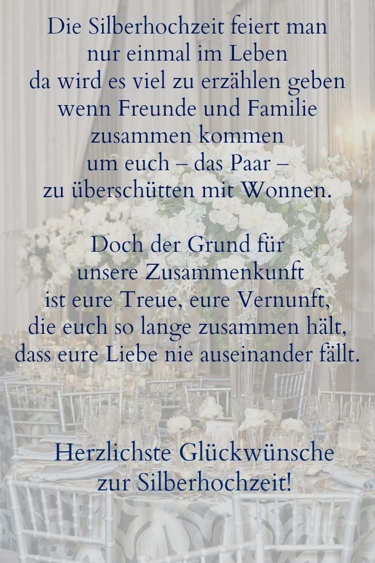 Weitere glückwünsche zur silberhochzeit finden sie hier. Sonja und bernd. Schöne einladungskarten zur silberhochzeit 25. Liebe thea lieber karl zur silberhochzeit wünschen wir alles erdenklich gute sowie viel glück und segen für weitere 25 ehejahre.