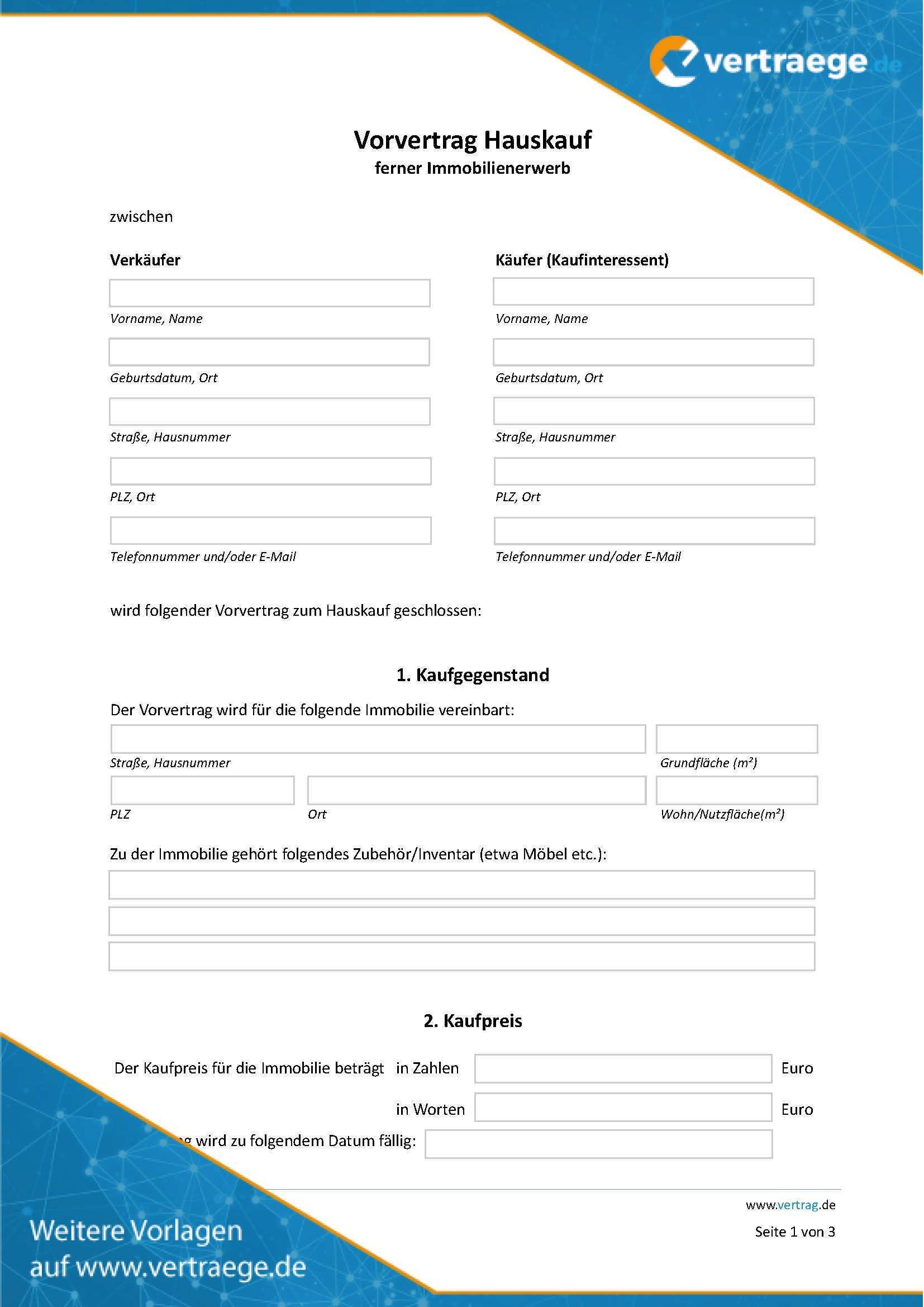 Beim verkauf einer liegenschaft ist auf einiges zu achten vor allem der kaufvertrag will richtig erstellt sein. Ein vorvertrag muster für den hauskauf erhältst du bei uns gratis als mustervertrag zum download. Dass er an der immobilie die zugesagten konditionen später auch erhält und der hausverkauf an ihn tatsächlich stattfindet. Einen notariellen kaufvertrag hauptvertrag zu einem bestimmten zeitpunkt anstreben zu wollen.