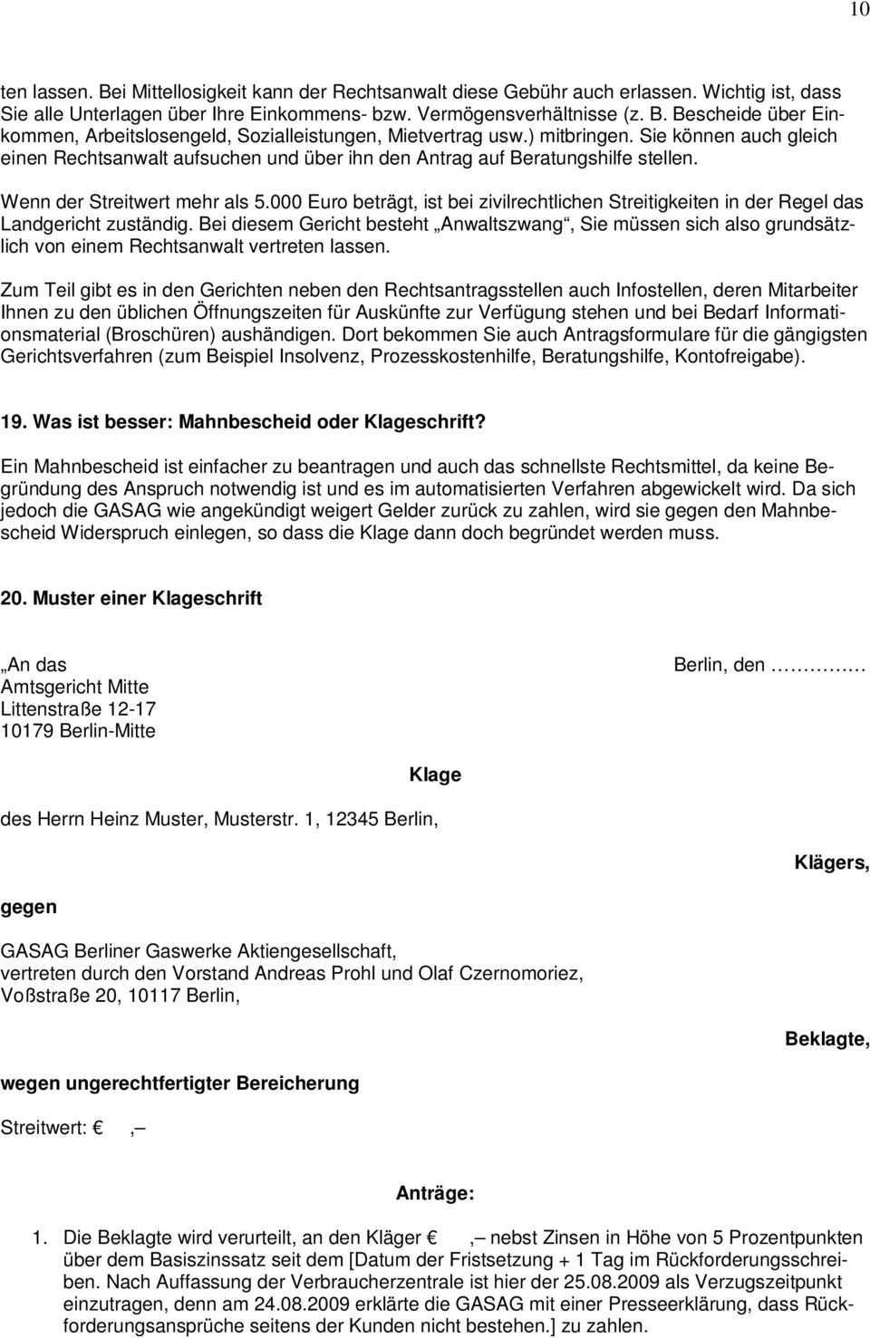 Grundmuster klageschrift zahlungsklage mit beziffertem antrag muster 55 18. 123 c 456 07 890 nachdem weitere ratenzahlungsvereinbarungen ab august 2011 nicht eingehalten wurden wurde am 13 09 2011 der mahnbescheid beim amtsgericht hagen beantragt geschäftsnr. Der frau a adresse klägerin. Eine klage punkt 9 wäre es wenn kein gerichtliches mahnverfahren vorher lief.