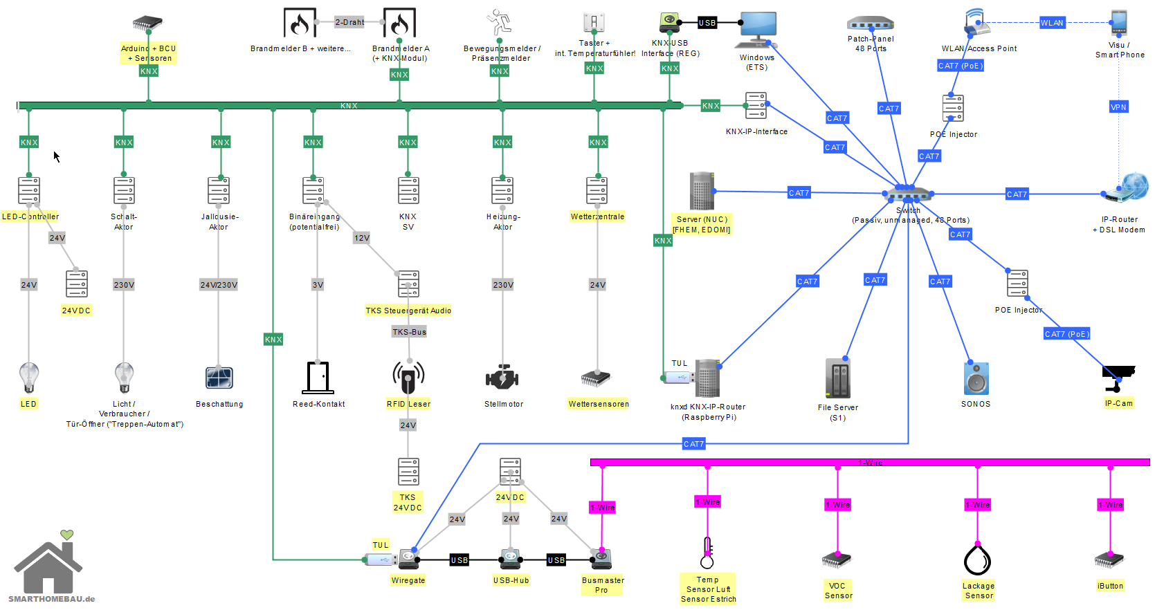 Knx einfamilienhaus beispiel. Hier haben wir mehrere assistenten kombiniert online und offline können beliebig mit realknx air betrieben werden. Hier sind einige der markantesten beispiele aus eigener erfahrung. Wir gehen den steinigen dafür aber auch den flexibelsten weg und setzen bei unserem projekt in unserem einfamilienhaus noch die gute alte ets5 professional ein. Um strom auf die verbraucher schicken zu können haben die aktoren einen 230v eingang roter pfeil und einen knx bus eingang grüner pfeil.