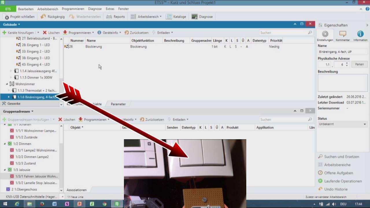 Die 16 ausgänge vom aktor sind paarweise nutzbar weshalb sie insgesamt bis zu 8 jalousien rolladen steuern können. Um strom auf die verbraucher schicken zu können haben die aktoren einen 230v eingang roter pfeil und einen knx bus eingang grüner pfeil. Zum beispiel dann wenn die jalousiesteuerung mit knx nicht nur strikt nach einem vorprogrammierten schema f agieren sondern auch in ausnahmefällen reagieren soll. Einfache steuerung mit der ets programmiert.