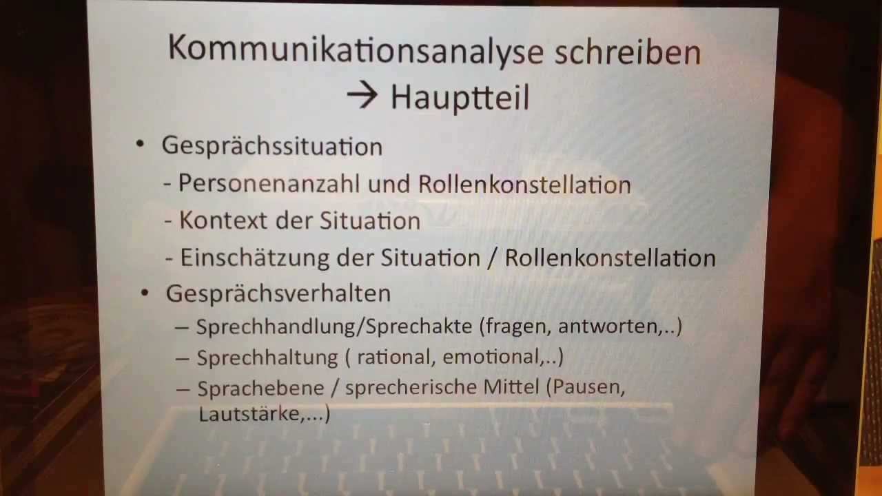 Aufgabe ist es eine kommunikationsanalyse zu schreiben. Schaut man sich die beziehung. Meine lehrerin hat mir jetzt folgendes über den aufbau der klausur gegeben. Wir schreiben kommenden dienstag eine deutschklausur zum thema kommunikation.