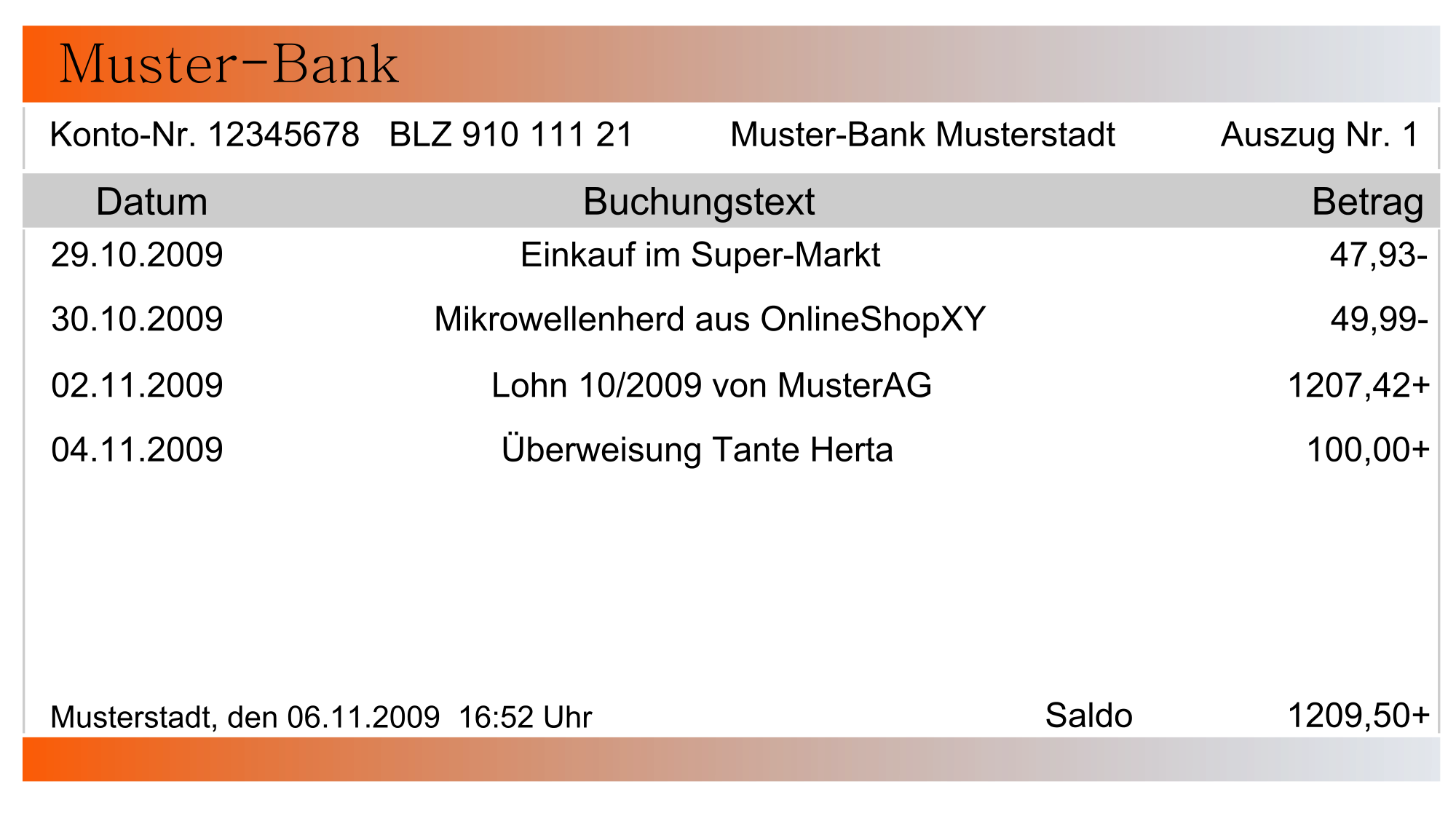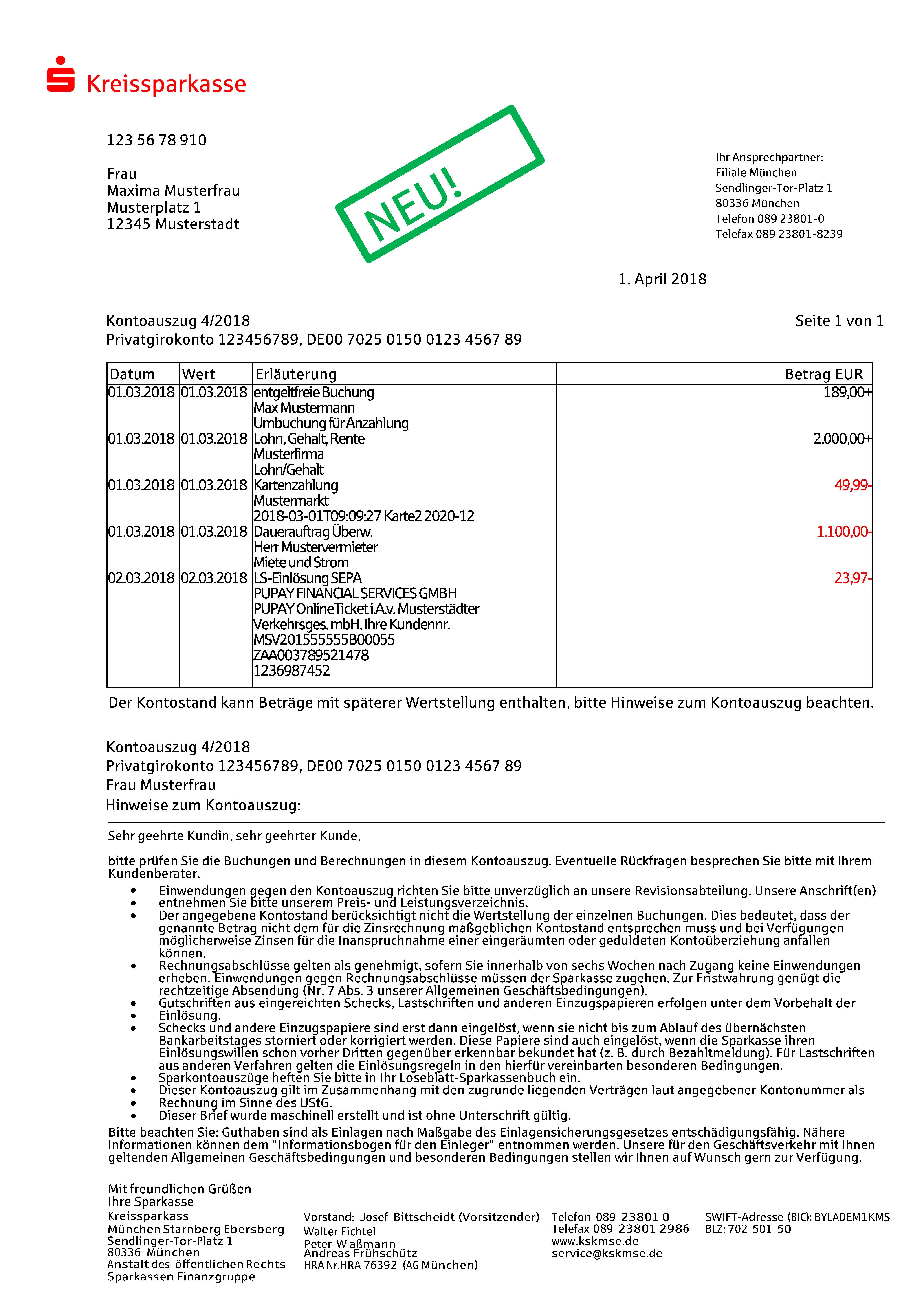 Kontoauszug sparkasse muster. Dies ist eine barrierefreie vorlage. Kontoauszug diese vorlage eignet sich dafür für den kunden einen aktuellen kontoauszug zu erstellen und ihn so auf mögliche offene posten oder ein guthaben aufmerksam zu machen. Dies kann online per kontoauszugsdrucker am bankschalter oder durch das zuschicken der kontoauszüge erfolgen. Online kontoauszüge nach jedem lesen ausdrucken und archivieren.