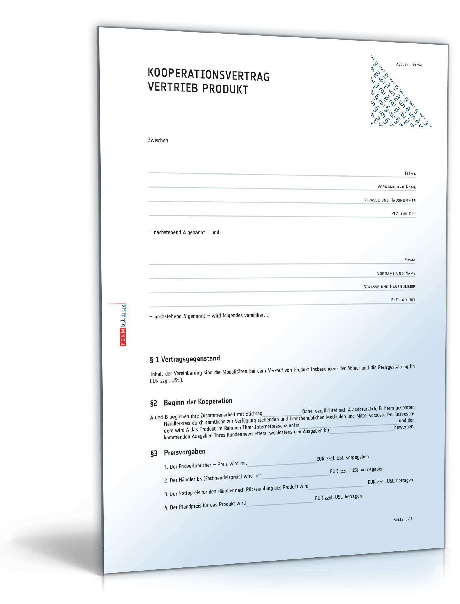3 soweit für den verkauf der produkte erforderlich hält der lieferant den vertriebspartner bzw. Das kooperationsvertrag muster kann leicht an die konkrete kooperation angepasst werden und zu diesem zweck im format word bearbeitet werden. Die gestaltung von kooperationsverträgen ist schwierig da es hierfür keine statischen musterverträge gibt. Gegenstand des vertrages ist der vertrieb eines bestimmten produkts oder einer bestimmten produktserie der vertrieb kann räumlich in einem sog.