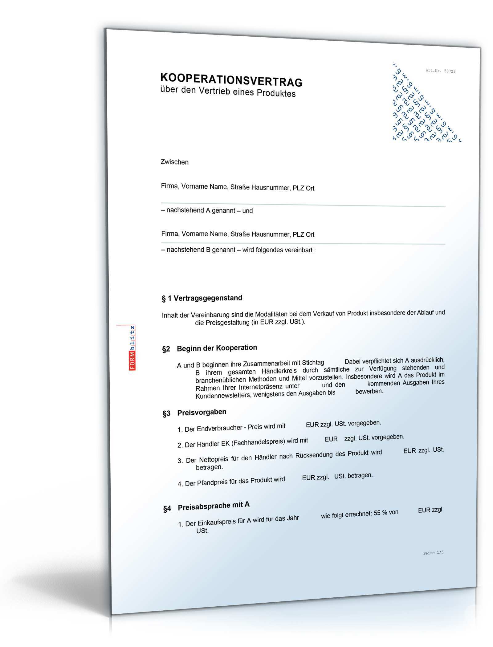 Kooperationsvertrag vertrieb produkt kooperationsvertrag vorlage 0d. Rechtssichere vorlage sofort zum download als pdf und word. Füllen sie die leeren felder aus und wählen sie die bestimmungen dieses internationalen vertrags die ihren bedürfnissen am besten entsprechen. Mit dieser vorlage kann ein vertriebsvertrag erstellt werden.
