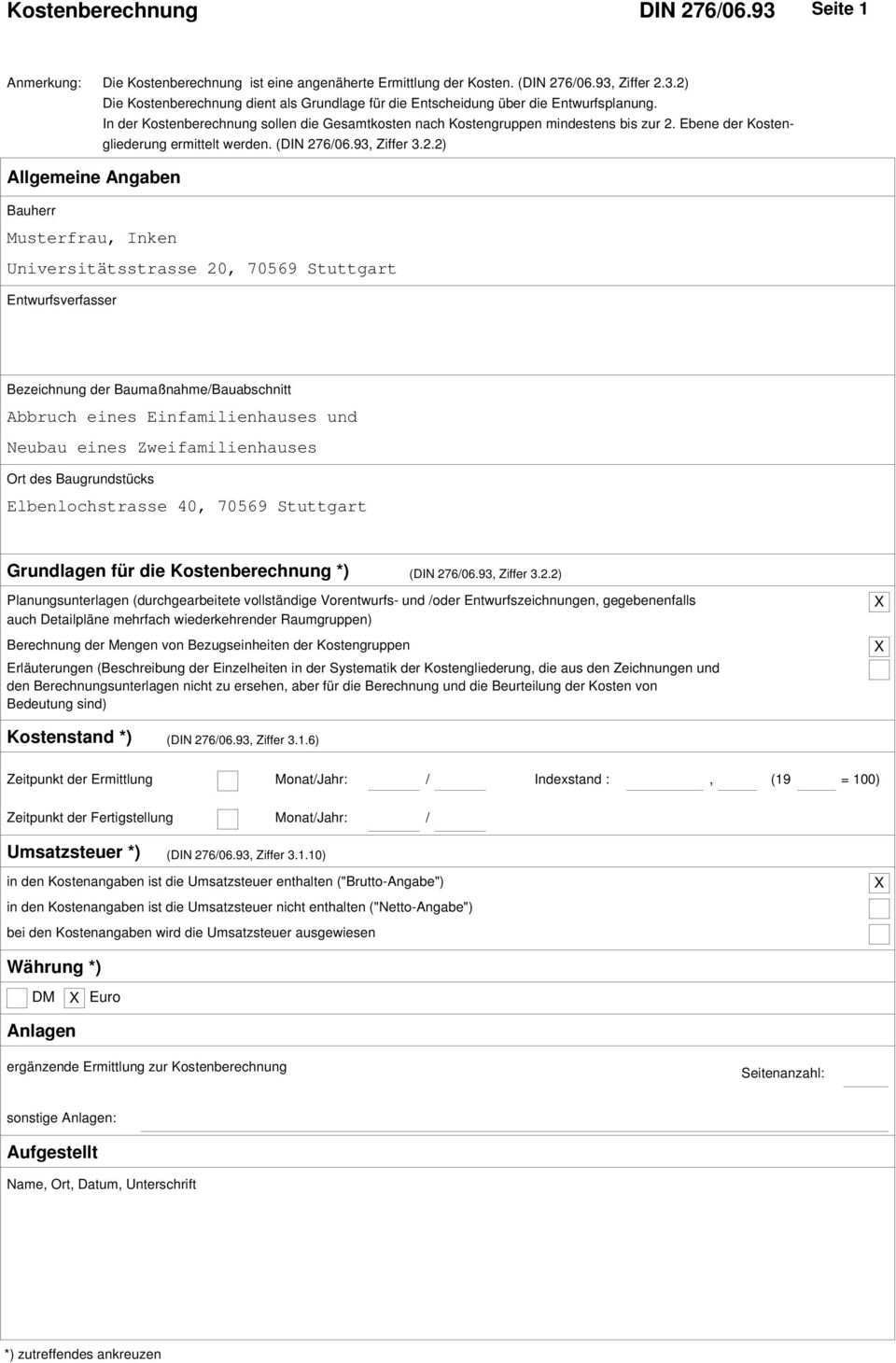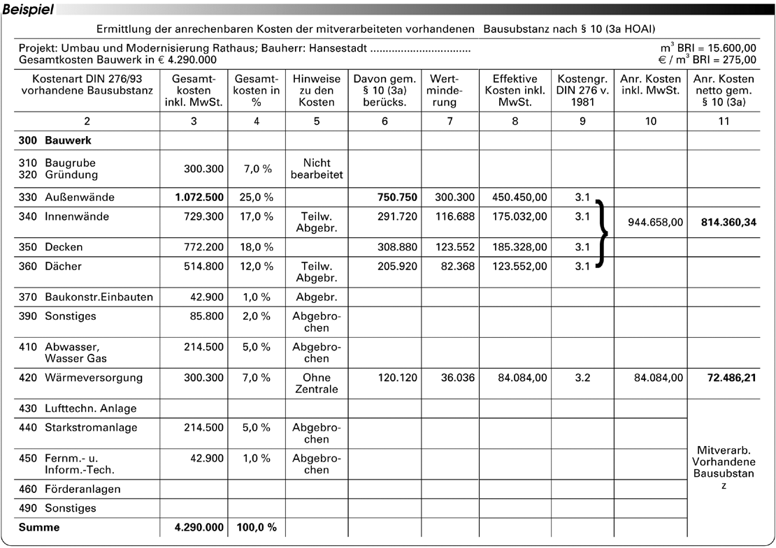 Kostenberechnung Din 276 Beispiel