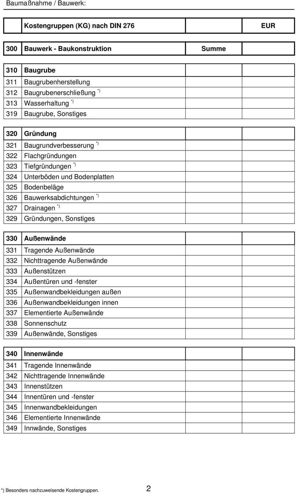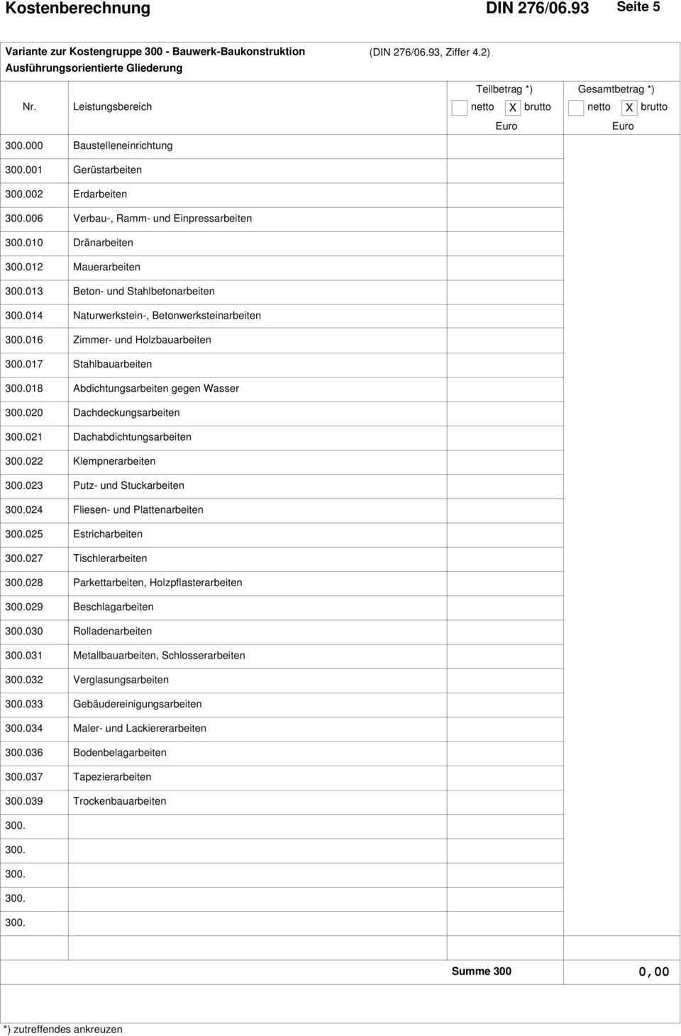 Kostengruppen din 276 tabelle 2021. Hochbau dezember 2008 und din 276 4 teil 4. Vergleich din 276 2018 2008. Vorlage kostenschätzung für hochbauprojekte nach din 276 subject.