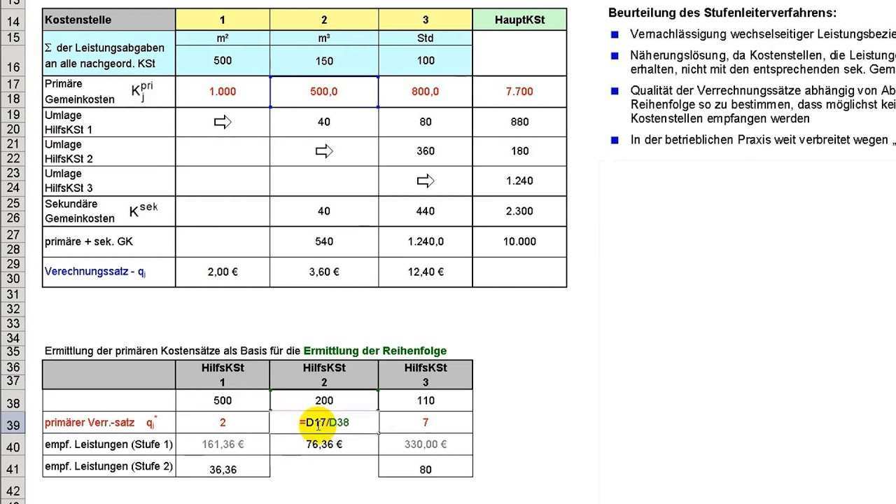 Von der kostenartenrechnung bis zur kostenträgerrechnung. Um die endkosten berechnen zu können brauchen wir zuerst die summe der primär und sekundärkosten der kostenstellen. Gleichungsverfahren beispiel kostenstelle 1 liefert 40 seiner leistung an kostenstelle 2 und diese wiederum die hälfte von deren leistung an kostenstelle 1. Durchführung der kostenstellenrechnung mittels bab.