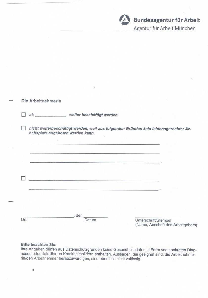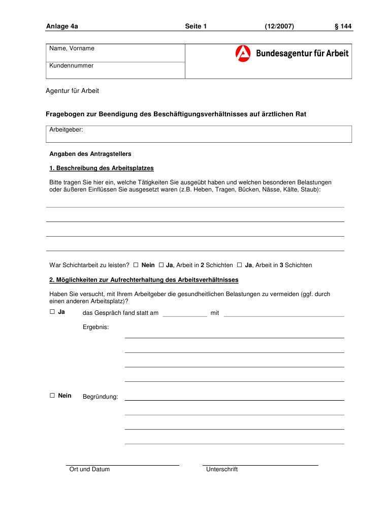 Beschreibung des arbeitsplatzes bitte tragen sie hier ein welche tätigkeiten sie ausgeübt haben und welchen besonderen belastungen. Diese konsequenz beruhte auf einer lange gültigen geschäftsanweisung der agentur für arbeit die sich auf 159 sgb iii bezog. Oder auf einem sicheren wege verschickt werden zum beispiel per einschreiben rückschein oder über ein versand mit einem bote. Agentur für arbeit fragebogen zur beendigung des beschäftigungsverhältnisses auf ärztlichen rat arbeitgeber.