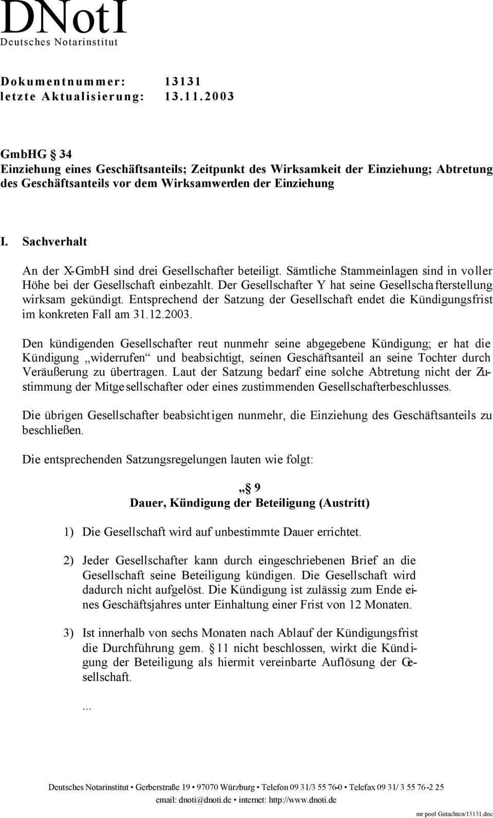 Die amtsniederlegung erfolgt unter der aufschiebenden bedingung dass die niederlegung im handelsregister eingetragen wird. 1 gmbhg gilt derjenige für die gmbh solange als gesellschafter solange er in der gesellschafterliste eingetragen ist. Die gesellschafterversammlung ist generell für die erklärung der kündigung zuständig und insbesondere ist dazu ein entsprechender gesellschafterbeschluss erforderlich wird die kündigung durch die gesellschafterversammlung beschlossen dann kann der geschäftsführer durch dieses schreiben. Muster vorlage zur kündigung von gbr.