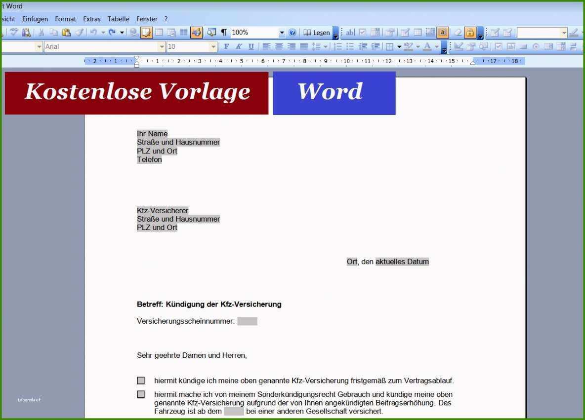 Kuendigung Kfz Versicherung Vorlage Word Kostenlos