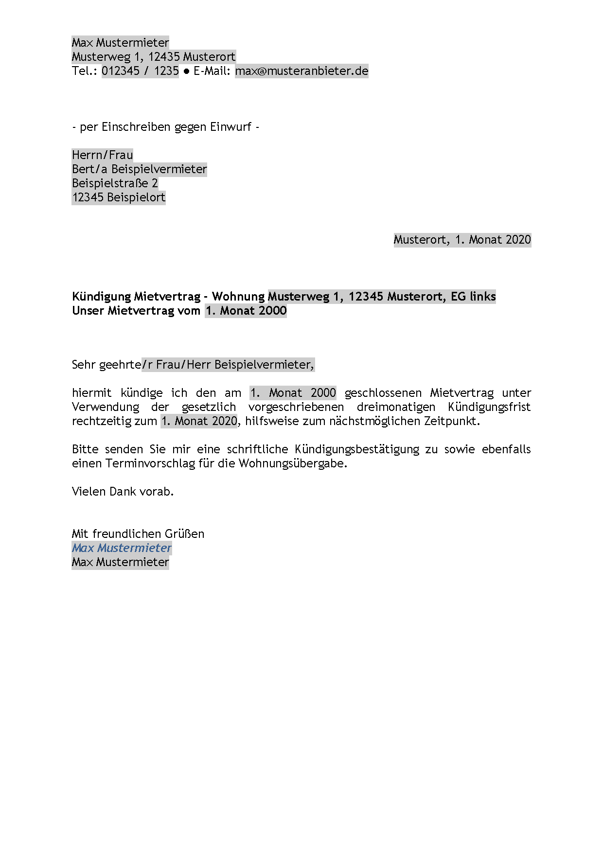 Kuendigung wohnung ohne mietvertrag vorlage. Mit dem ausfüllbaren formular erhältst du ein fertiges mietvertrag kündigungsschreiben als pdf oder word zum ausdrucken. Mit dieser word vorlage ist die kündigung leicht gemacht. Mietverträge müssen in aller regel schriftlich gekündigt werden. Folgende punkte sind bei der ausserordentlichen kündigung der wohnung zu beachten.