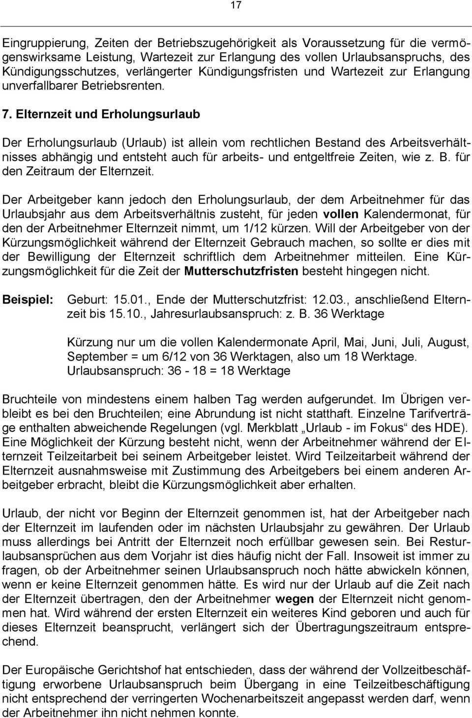 Wie eine kündigung oder abmahnung ist auch die erklärung der kürzung eine einseitige empfangsbedürftige willenserklärung. 1 minute während der elternzeit hat ihr arbeitnehmer keinen anspruch auf erholungsurlaub. Arbeitgeber sollten stets von der in 17 abs. Wenn die elternzeit beispielsweise im oktober 2020 endet kann der arbeitnehmer seine urlaubsansprüche noch bis zum 31 12 2021 geltend machen.