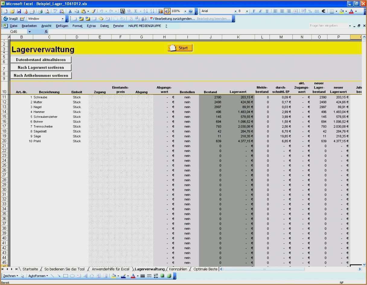 Lagerbestandsliste Excel Vorlage Kostenlos