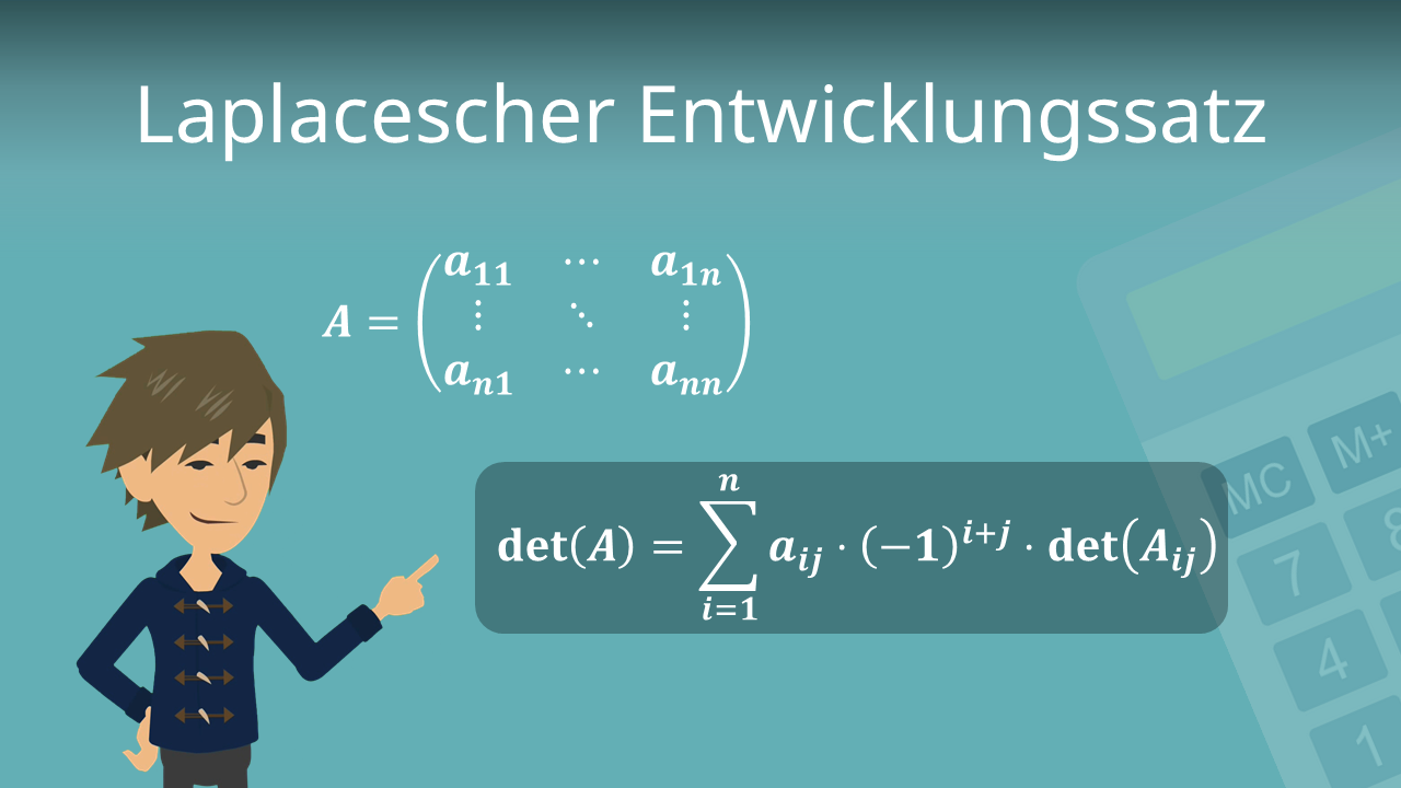 Laplace entwicklungssatz beispiel. Bisher hast du den laplace entwicklungssatz nur auf 3 3 matrizen angewendet. Laplace entwicklungssatz der entwicklungssatz von laplace hilft wenn zu größeren als matrizen eine determinante bestimmt werden soll 6 1. Wir wählen hier also die 3. Dann betrachtest du jeden eintrag in dieser spalte.