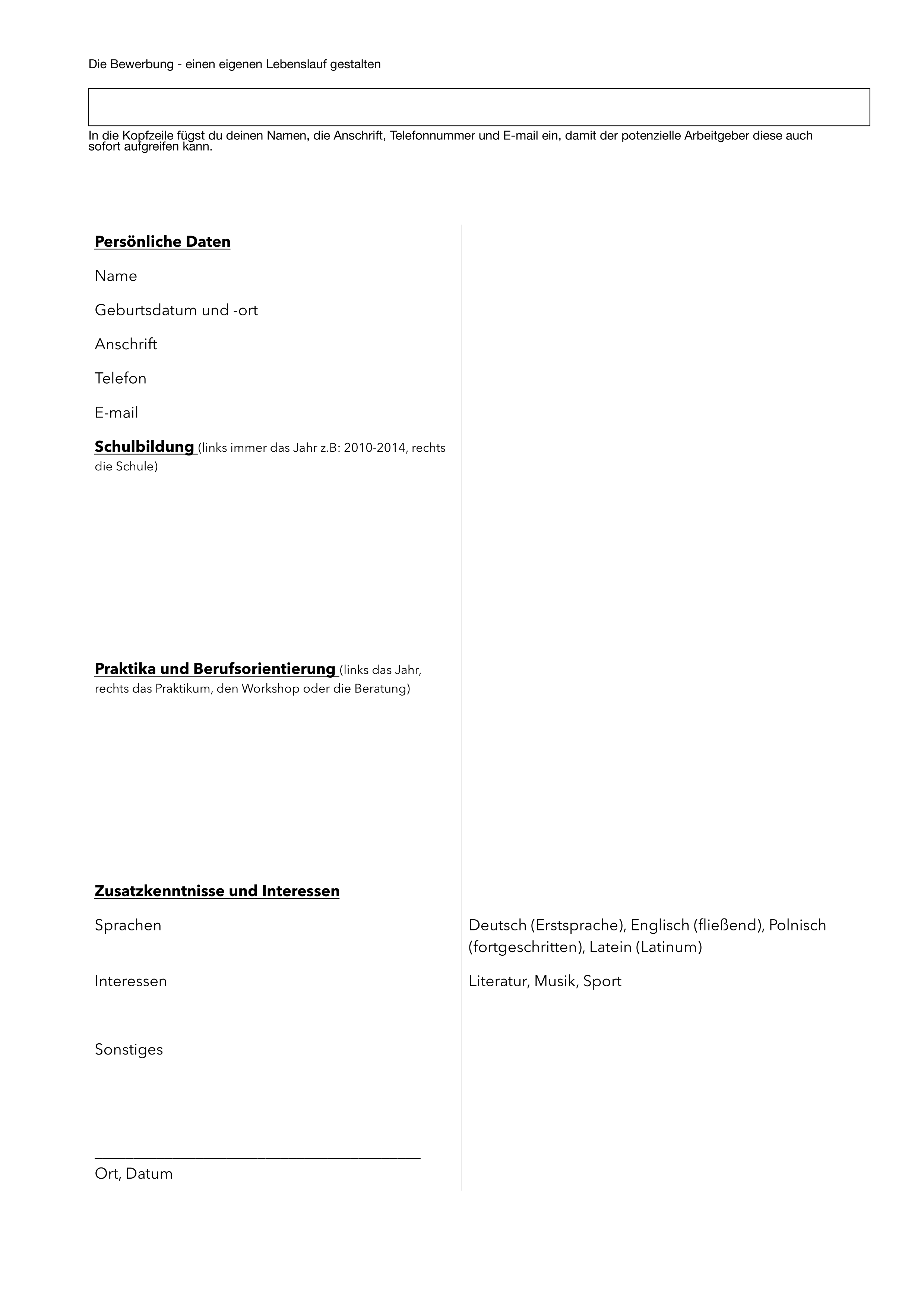 Lebenslauf kopfzeile muster. Diese lebenslauf vorlage besticht mit schlichten farben und einem aufgeräumten layout. Für eine bewerbung bei einer bank solltest du eine schlichte vorlage wählen. übersichtlich gestalten und leichte akzente setzen wer sich nicht dafür entscheidet eine kopfzeile in der bewerbung zu verwenden notiert seine eigenen kontaktdaten im anschreiben in der regel rechtsbündig bevor danach linksbündig die informationen des empfängers folgen. In die kopfzeile kommt ihr name mit anschrift und kontaktdaten.