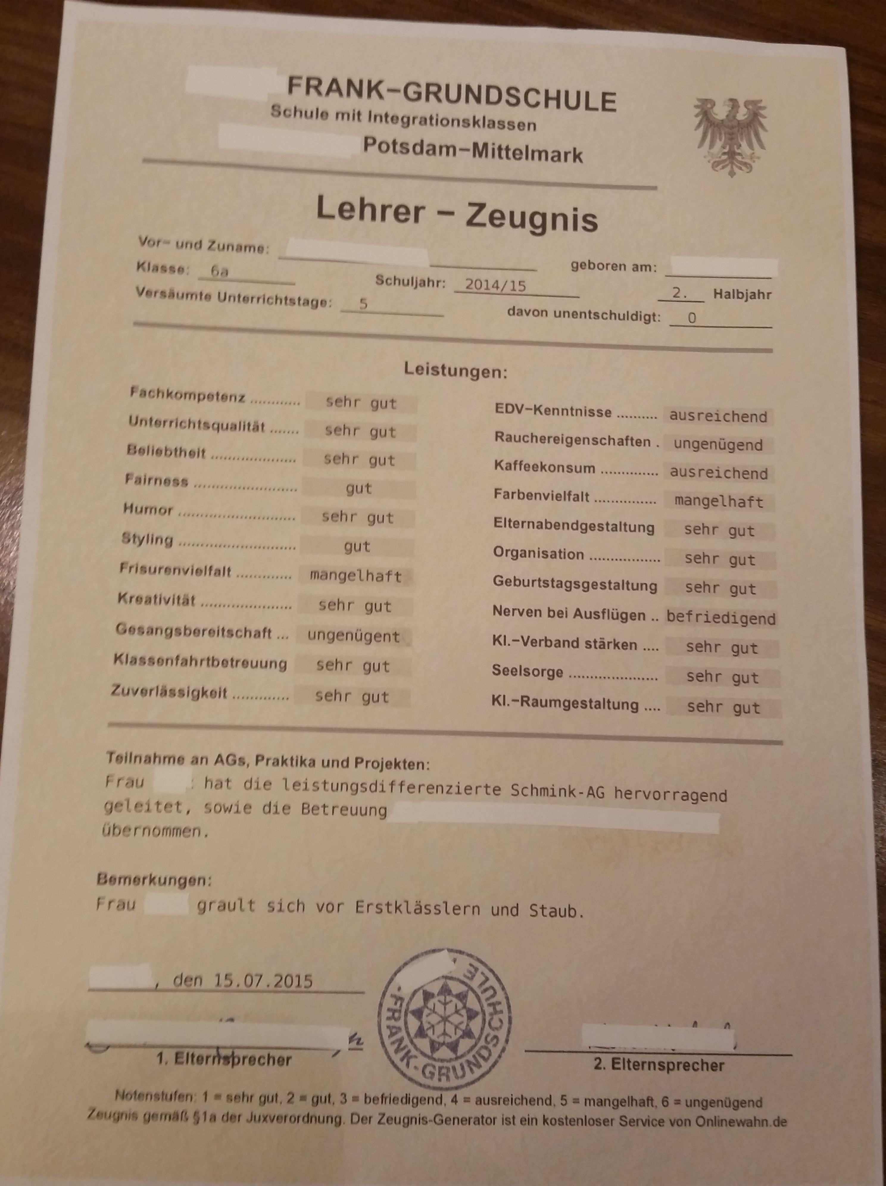 Lehrerzeugnis Von Schuelern Vorlage
