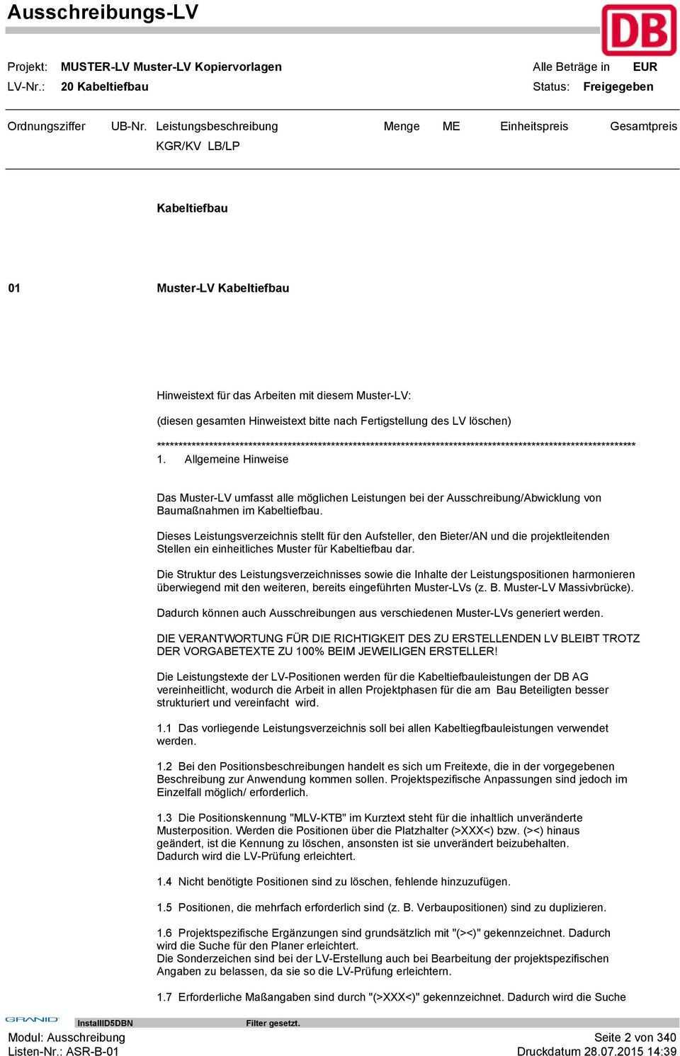 Die vorliegende musterleistungsbeschreibung besteht aus. In diesem lv finden sie etliche muster ausschreibungstexte als bauleistungspositionen und. Sollte es sich um interne projekte handeln dann wird die leistungsbeschreibung von dem initiator oder dem sponsor des projekts auf grund der betrieblichen notwendigkeiten oder der anforderungen auf das produkt oder die dienstleistung geliefert. Die leistungsbeschreibung enthält das fachliche feinkonzept des entsprechenden projekts bzw.
