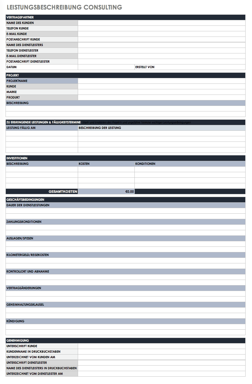 Leistungsbeschreibung muster dienstleistung. Rahmenvertrag für lieferungen und dienstleistungen. Um eine orientierungshilfe zu bieten stellt die industrie und handelskammer zu leipzig musterverträge zur verfügung. 104 abs 1 bvergg bestimmt ausdrücklich dass bei einer konstruktiven leistungsbeschreibung die leistungen so eindeutig vollständig und neutral zu beschreiben sind dass die vergleichbarkeit der angebote gewährleistet ist sie hat technische spezifikationen zu enthalten und ist erforderlichenfalls durch pläne zeichnungen modelle proben muster und dergleichen zu ergänzen. Og 12345 musterstadt 2 vertragsbestandteile als vertragsbestandteile gelten.