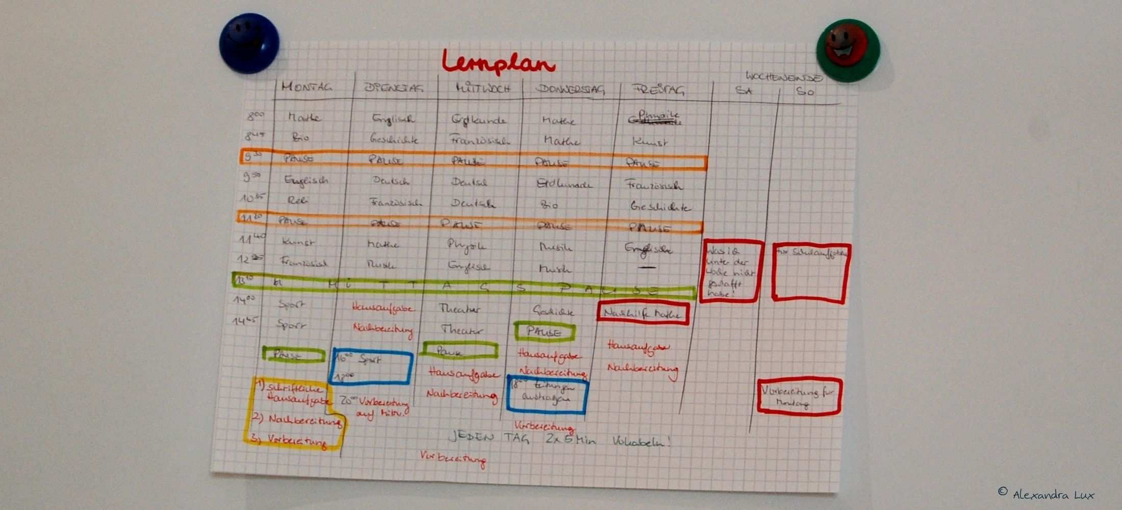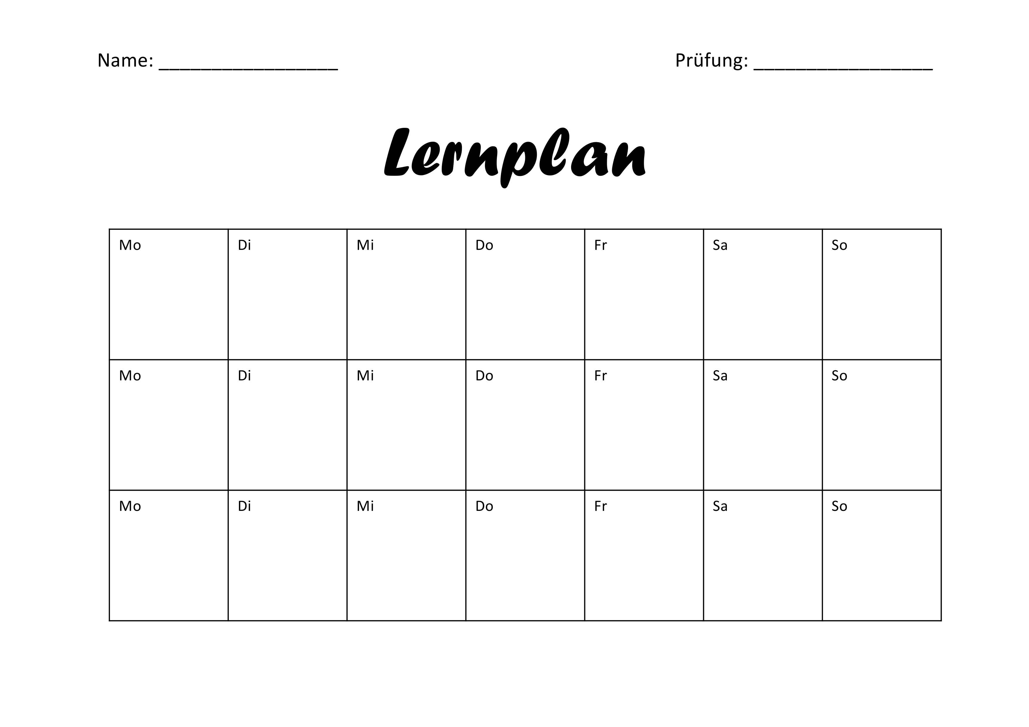 Um einen lernplan erstellen zu können schreiben sie entweder in einen geeigneten kalender oder erstellen sich selbst mit word oder excel eine tabelle.